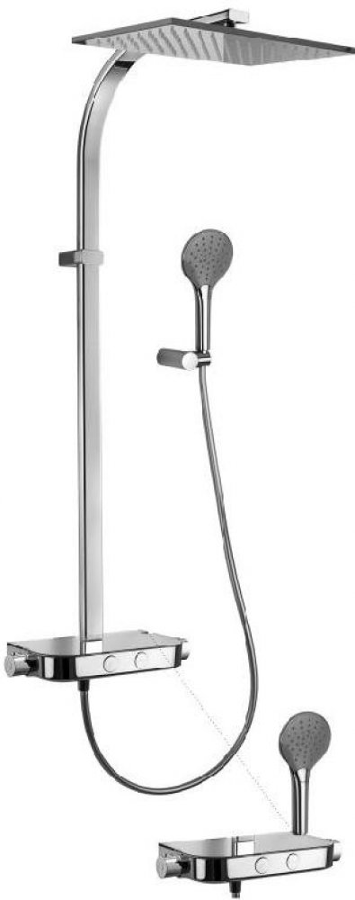 Sprchový sloup s termostatickou baterií provedení chrom výška setu 1190 mm set obsahuje: termostatická baterie se 2 tlačítky pro přepnutí hlavová/ruční sprcha a s poličkou obdélníková hlavová sprcha City, 340x220 mm, kovové provedení kulatá sprchová hlavice Sofia, 2 proudy, ABS plast pevný nástěnný držák sprchy možnost odložit sprchovou hlavici i zprava na boční straně baterie flexibilní hadice 15...