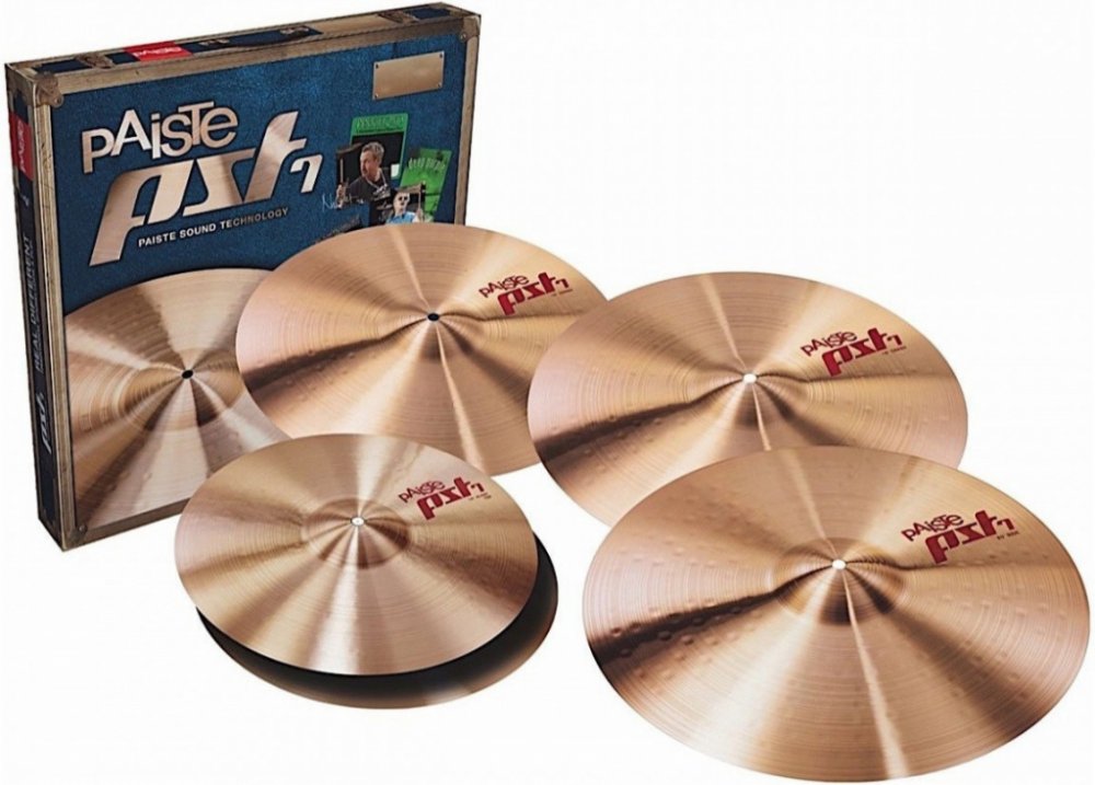 PAISTE PST7 - Počátek výroby: 2014, charakteristika: Činely řady PST7 osloví především bubeníky, kteří upřednostňují tradiční zvuk i vzhled činelů. PST7 jsou vyrobeny ze stejné slitiny jako legendární Paiste 2002 a stejně tak se jim přibližují i vzhledově i zvukem. Vyráběny jsou ve Švýcarsku a dostupné jsou ve třech váhových kategoriích - light/thin, medium a heavy. Slitina: CuSn8 bronz, známý jako 2002 bronz, použití: vhodné do všech hlasitostních kategorií, jak pro živé hraní, tak pro studio Zvuk: tr