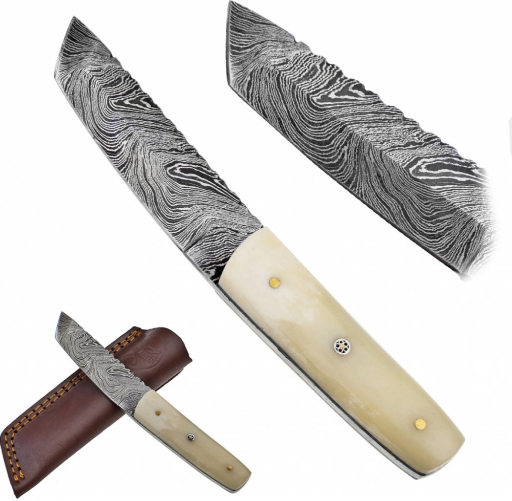 Damaškové tanto "BONE MASTER" s koženým pouzdrem