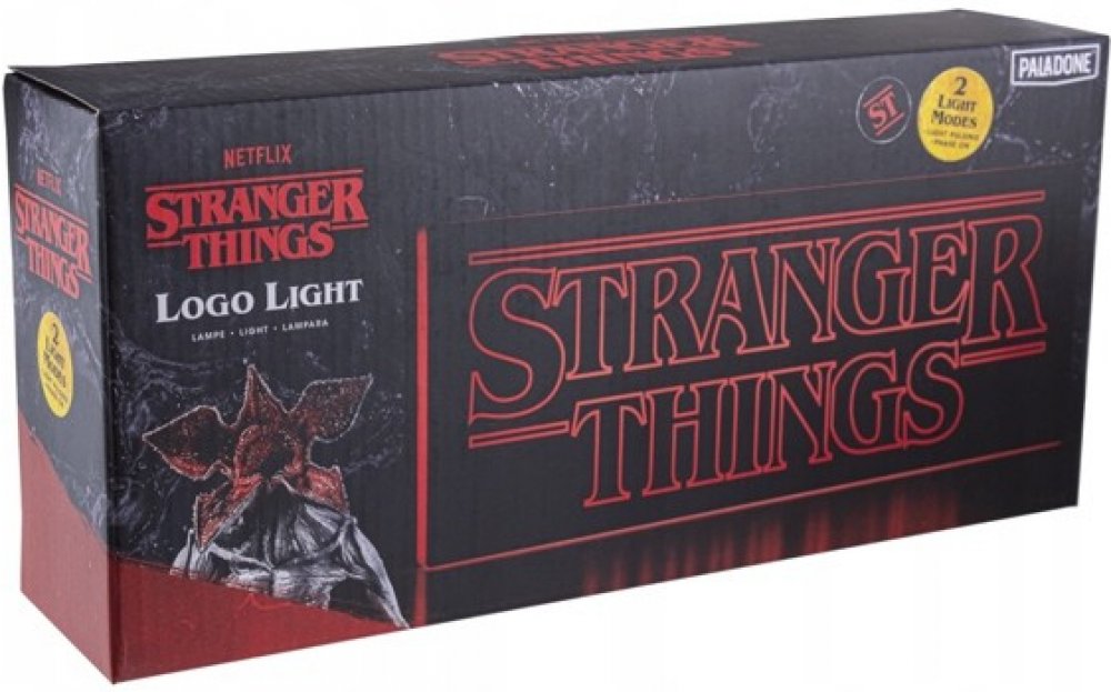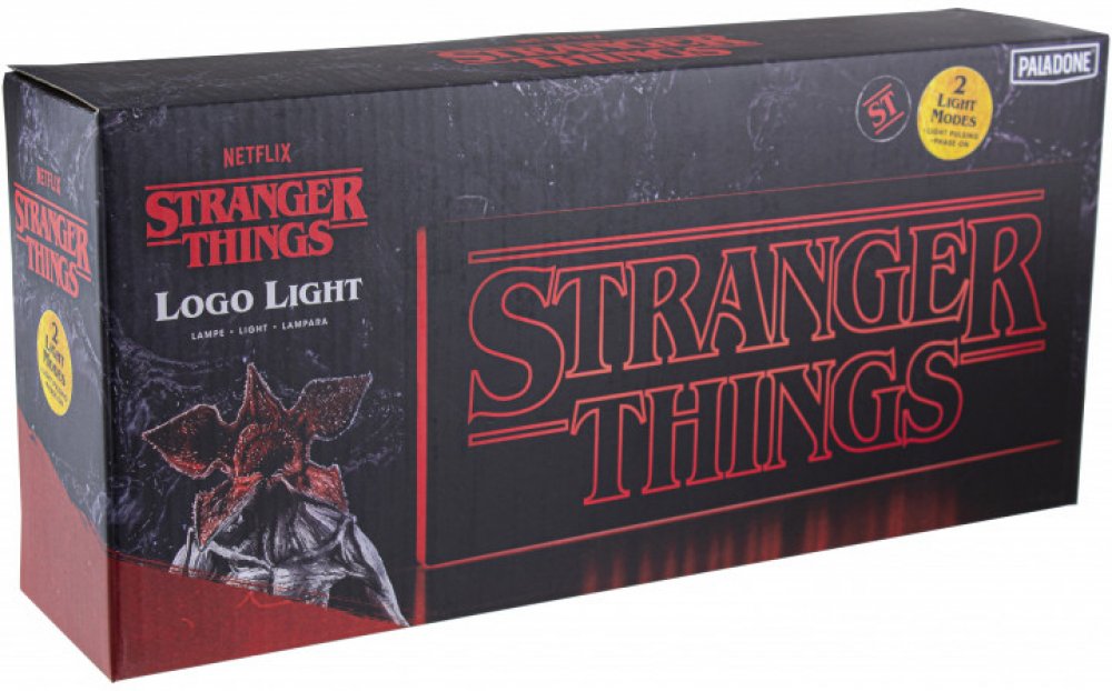 Světlo o šířce 30 cm je vybaveno červeným a černým logem z původní série Netflix Stranger Things. Světlo lze připevnit na stěnu (návod je součástí dodávky) nebo použít samostatně stojící, takže jej můžete umístit kdekoli ve svém domě. Navíc, obsahuje režimy fázové zapnutí a pulzujícího světla pro větší efekt.