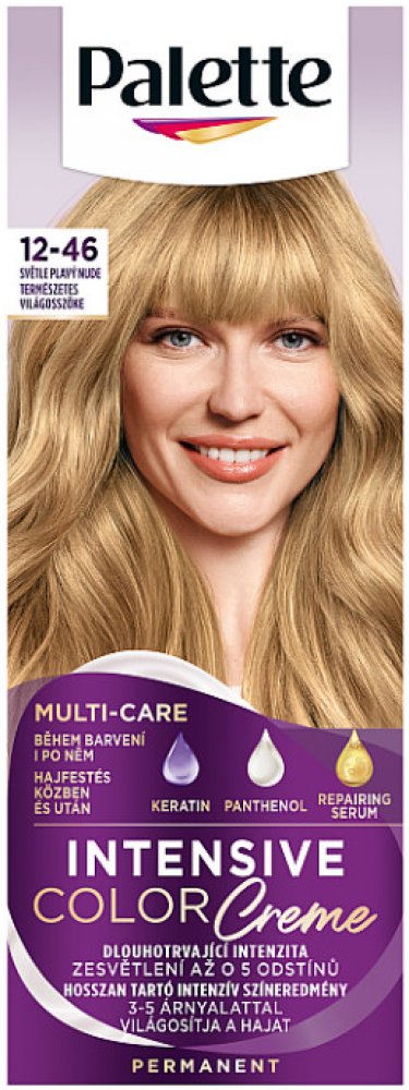 Palette barva na vlasy Intensive Color Creme dodá vašim vlasům dokonalý, dlouhotrvající odstín. Barvicí směs díky svému složení působí až do hloubky vlasového vlákna, uzamyká v něm své intenzivní pigmenty a vlasy získají zářivý lesk se 100% krytím šedin.