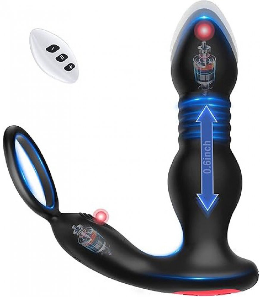 Paloqueth Anal Lock Prostate Stimulator Dual Motor with Thrusts & Vibrations & Remote Control Black