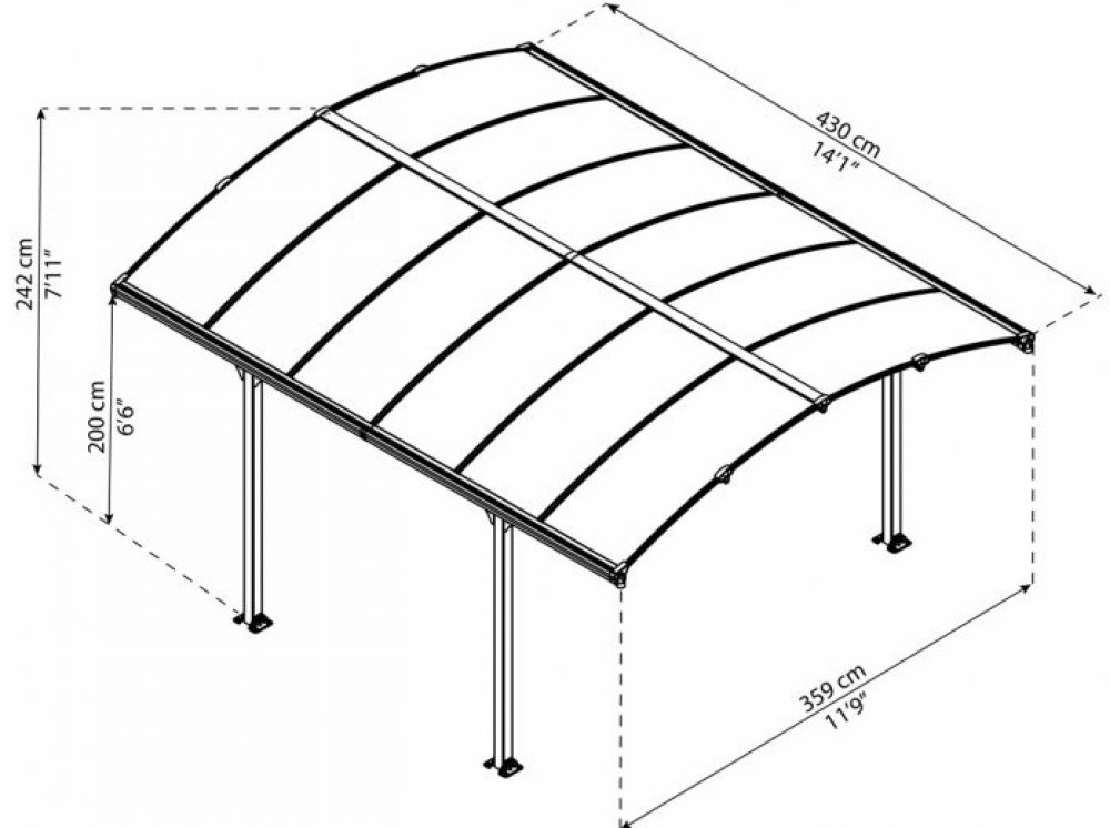 Arcadia 4300 - hliníkový (montovaný) přístřešek s obloukovou střechou.