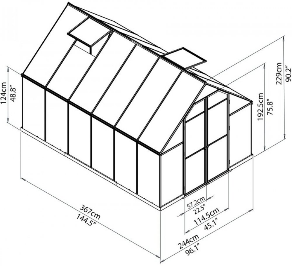 Rozměry skleníku (D x Š x V) (cm): 366 x 242,5 x 231