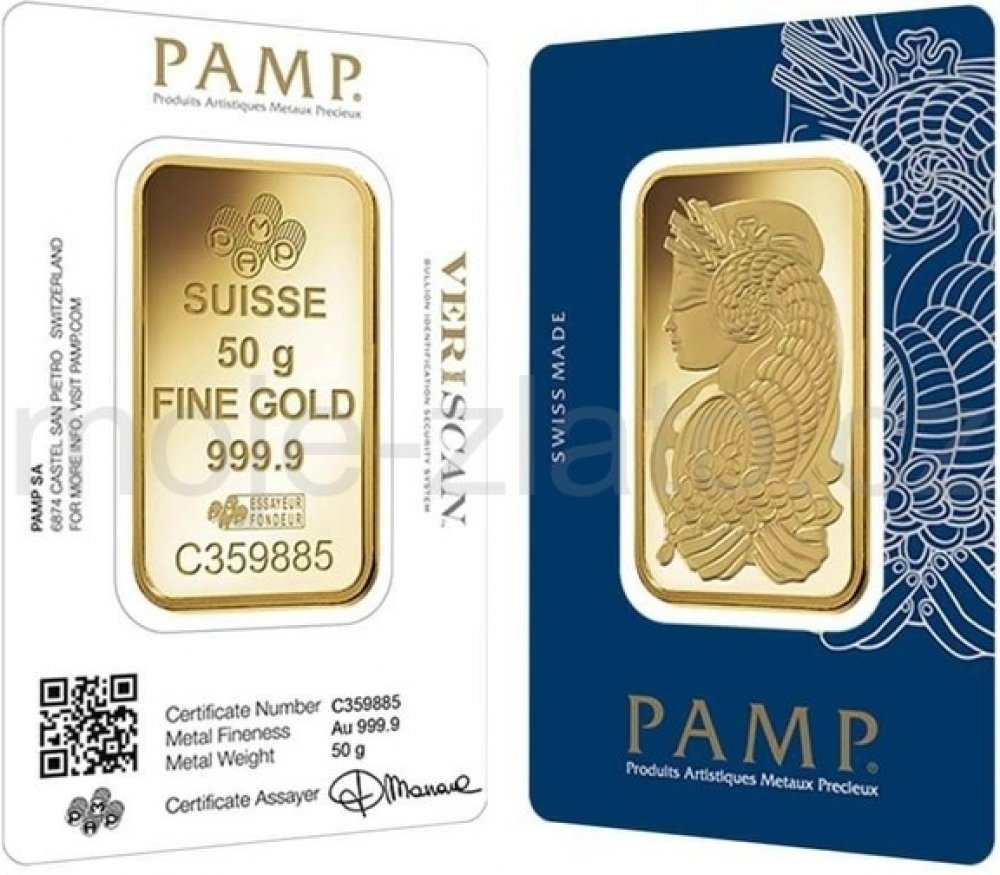 slitky 50 g PAMP blistry standard 1977 999.9 / 1000