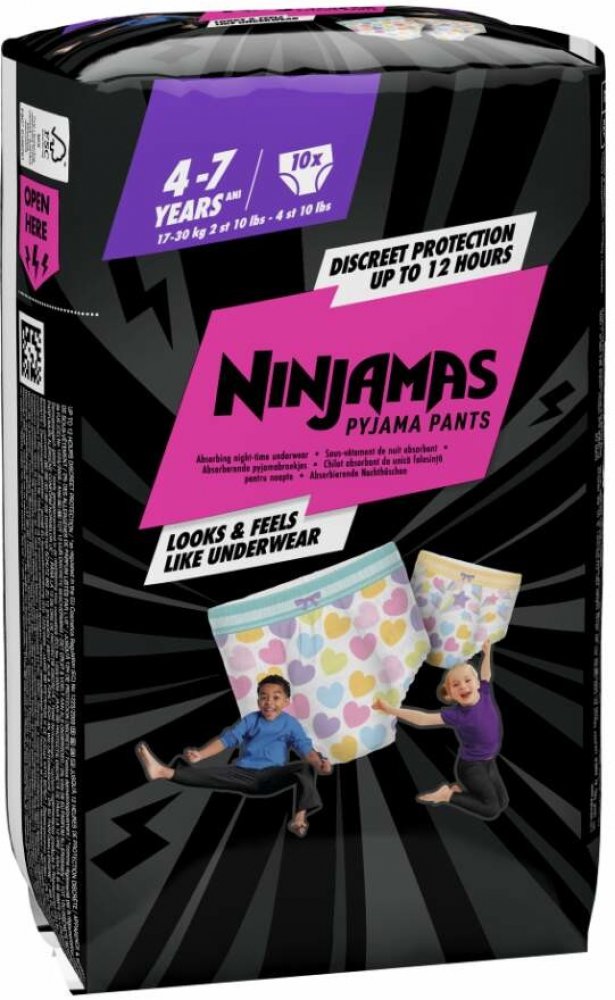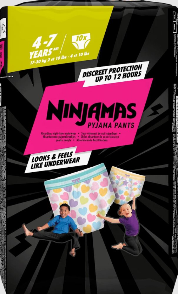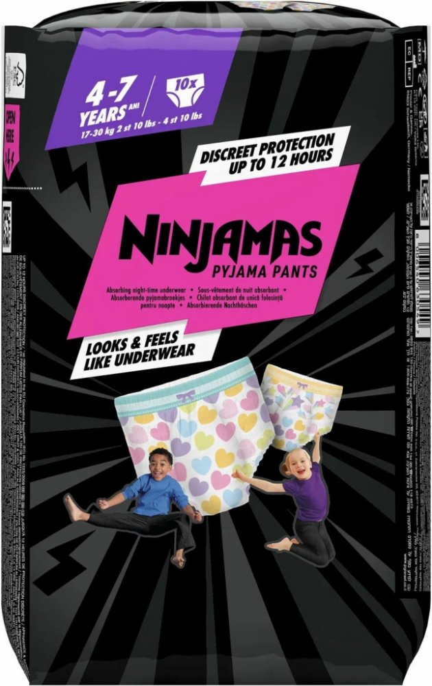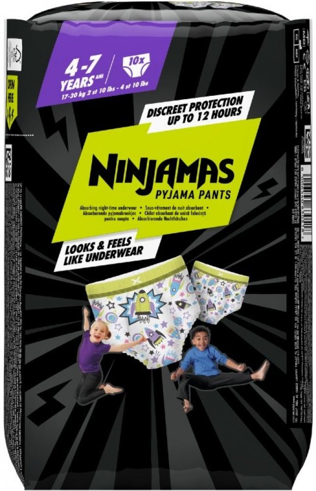 Plenkové kalhotky Pampers Ninjamas Pants jsou tu od toho, aby diskrétně ochránily vaše děti před nechtěnými nehodami spojenými s dětskou inkontinencí. Pampers Ninjamas Pants ochrání před protečením po celou noc a navíc vypadají a padnou přesně jako spodní prádlo. Materiál má skvělé absorpční schopnosti, ale zachovává si vynikající prodyšnost pro komfort dětí.