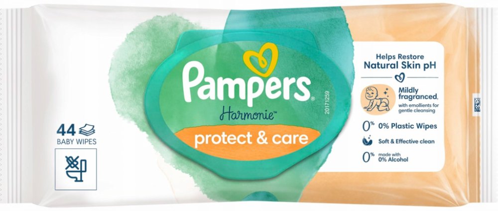 Jemná péče a ochrana pro jemnou dětskou pokožku – s nádechem měsíčku. Čisticí ubrousky Pampers Harmonie Protect&Care jsou jemnější než samotná bavlna a voda. Díky unikátnímu složení pomáhají jemné čistící a ochranné složky obnovit přirozené pH pokožky a zabraňují podráždění. Obsahují 0 % alkoholu a jsou vyrobeny ze 100 % rostlinných vláken, z nichž 10 % je bavlna. Receptura byla dermatologicky testována a schválena dermatology ze Skin Health Alliance.