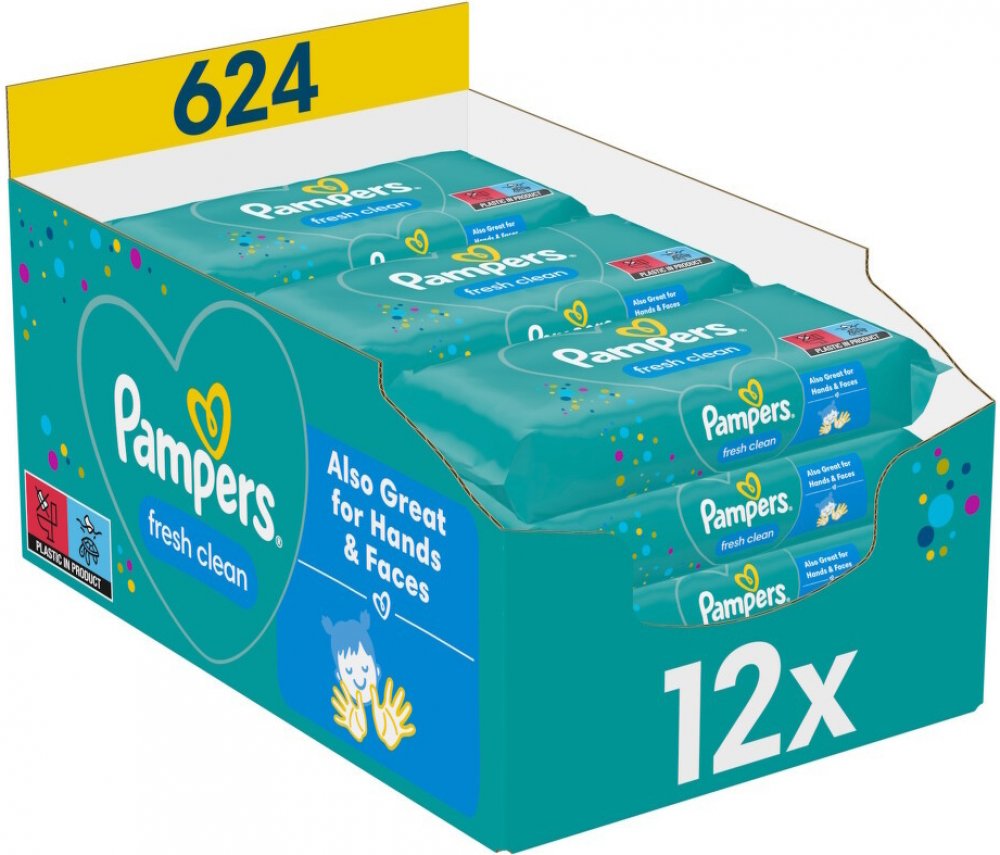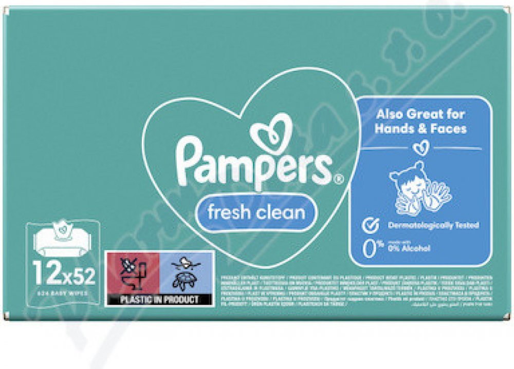 Pokožka vašeho děťátka je velmi citlivá a zaslouží si šetrné čištění na všech nejcitlivějších částech těla, jako je zadeček, ručičky a obličej. Čisticí ubrousky Pampers Fresh Clean nyní čistí ještě důkladněji (v porovnání s předcházejícím výrobkem) díky své měkčí a pevnější struktuře, stále s osvěžující vůní, kterou máte tak rádi a která potěší vás i vaše děťátko. Enzymy v moči a ve stolici mění pH pokožky a zvyšují riziko podráždění a vyrážky. Všechny čisticí ubrousky Pampers mají jedinečné složení, které chrání přirozené pH pokožky lépe než žínka a voda, takže citlivá pokožka vašeho dítěte je čistá a chráněná před podrážděním. Čisticí ubrousky Pampers Fresh Clean jsou dermatologicky testované a schválené dermatology z organizace Skin Health Alliance. Vzhledem k tomu, že jsou čisticí ubrousky Pampers Fresh Clean navržené s ohledem na citlivou pokožku děťátek, neobsahují alkohol, barviva.Důkladnější čištění oblasti plenek, rukou a obličeje děťátka (v porovnání s předchozím výrobkem)Čisticí ubrousky s jedinečným složením, které chrání přirozenou hodnotu pH pokožky lépe než žínka a vodaDermatologicky testované0 % alkoholu, barvivDíky jemnější a pevnější struktuře (v porovnání s předchozím výrobkem) odstraňují nepořádek ještě lépeVyrobeno z rostlinných vlákenSchválené dermatology z organizace Skin Health AllianceS osvěžující vůní pro příjemné čištěníUdržujte veškeré obalové materiály mimo dosah dětí, aby se předešlo nebezpečí udušení a / nebo uškrcení.