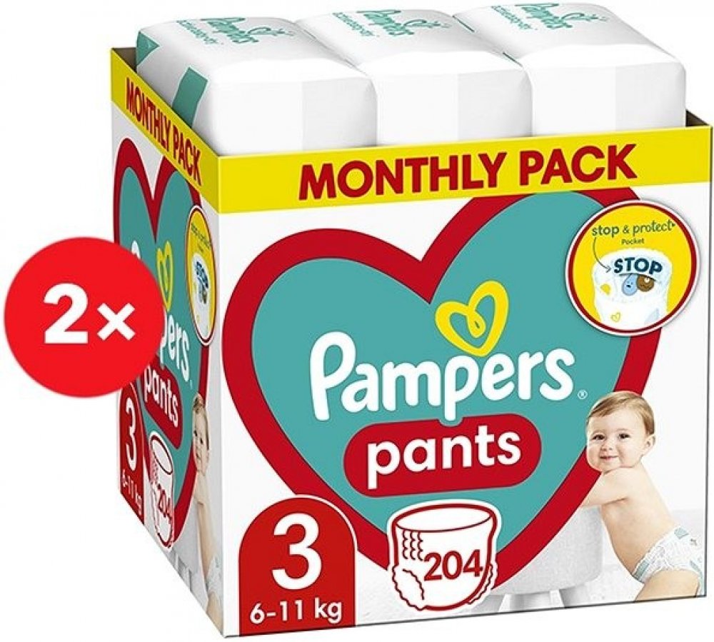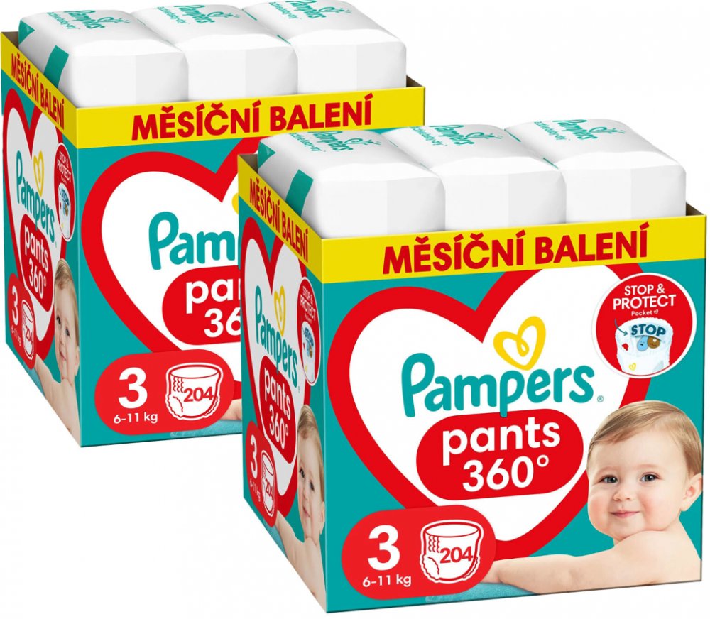 Chtěli byste pořídit plenkové kalhotky, které vašemu děťátku poskytnou maximální pohodlí? Pak jistě oceníte plenkové kalhotky PAMPERS. Díky anatomickému absorpčnímu jádru se kalhotky přizpůsobí tvaru tělíčka. Nedráždí pokožku, jelikož nejsou parfemované. V balení je celkem 408 ks Pampers Pants. Kalhotky rozměrově odpovídají velikosti 3. Tyto plenkové kalhotky PAMPERS jsou vhodné pro děti od 6 do 11 kg. Významné funkce plenkových kalhotek PAMPERS Pants Vel. 3 (408 ks) Plenkové kalhotky PAMPERS ochrání vaše děťátko před "nehodou" Anatomické absorpční jádro se přizpůsobí tělu děťátka Plenky nejsou parfemované, tudíž nedráždí citlivou pokožku Stačí je jen natáhnout Plenkové kalhotky Pampers Pants o velikosti 3 Ideální pro děti s hmotností od 6 do 11 kg Plenkové kalhotky PAMPERS si oblíbíte vy i vaše děťátko