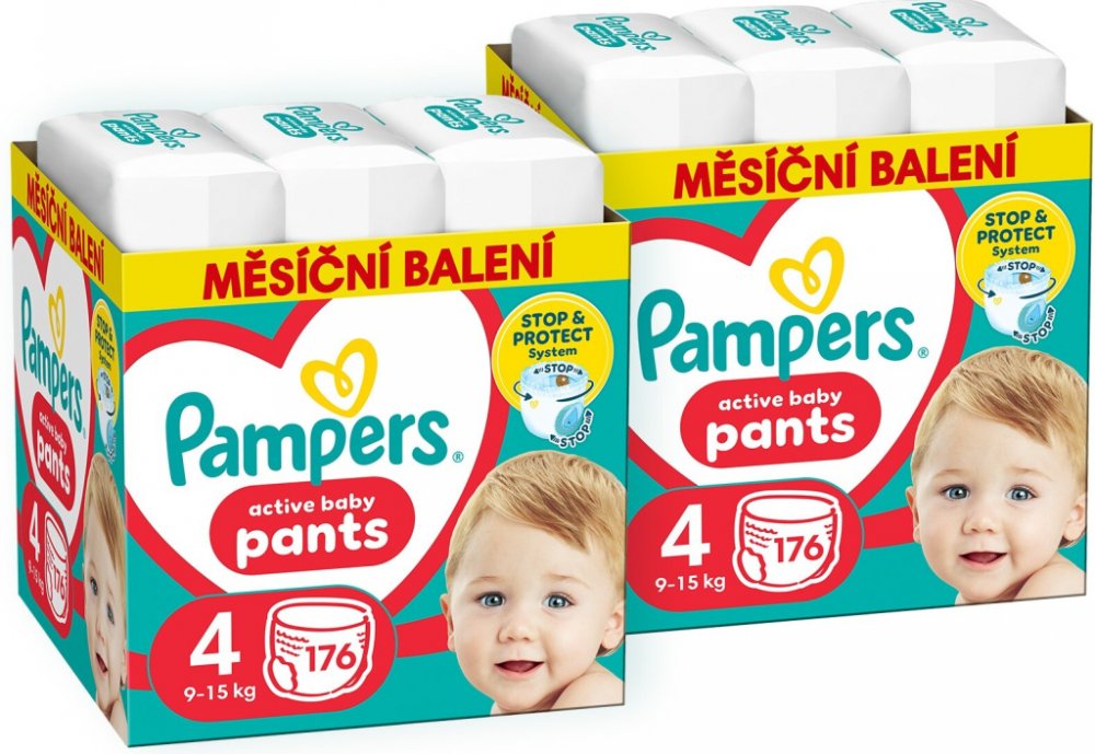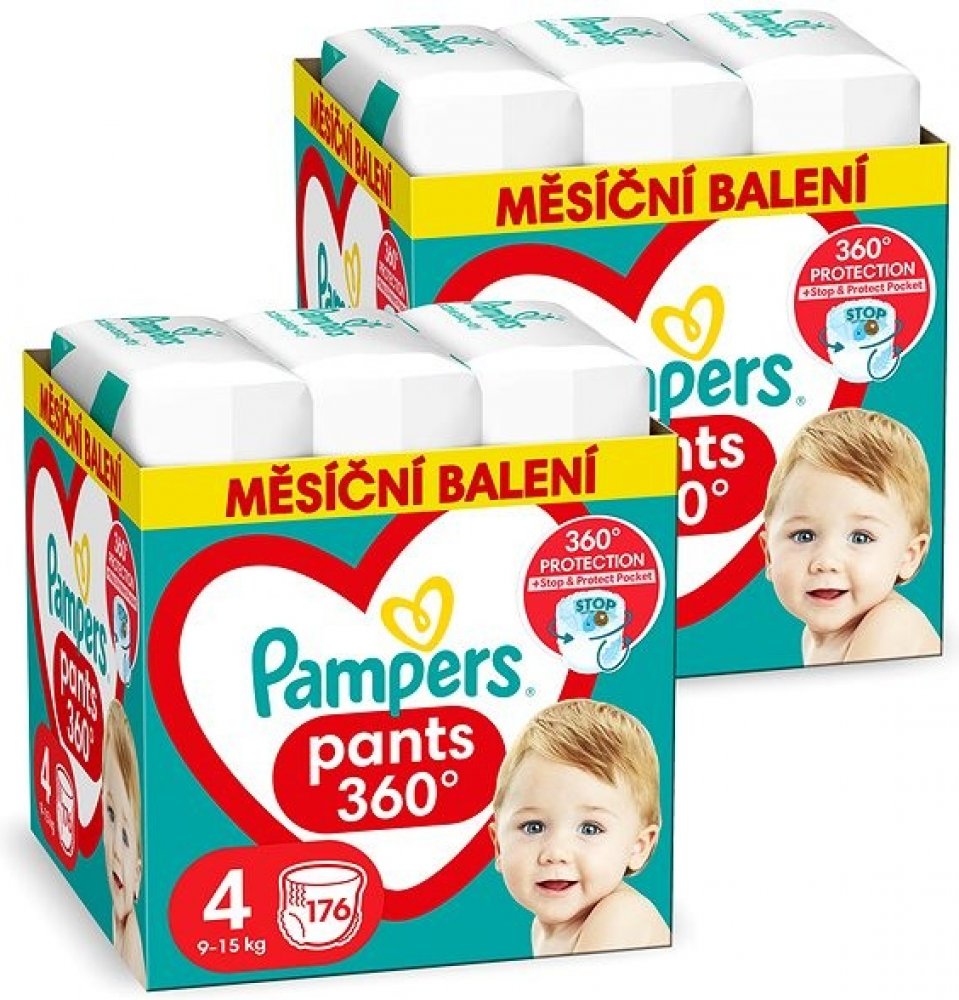 Poskytněte svému děťátku pohodlí a ochranu s plenkovými kalhotkami PAMPERS Pants. Prémiové plenky Pampers Protect byly navrženy tak, aby zajišťovaly maximální komfort a spolehlivou ochranu proti protečení. Díky technologii Stop & Protect a dvojitým ochranným bariérám plenky účinně zabraňují únikům vlhkosti kolem nožiček i na zádech, což přispívá k nerušenému spánku i radostným hrám během dne. 360° pružný pas usnadňuje oblékání a zajišťuje přiléhavé a pohodlné nošení. Navíc superabsorpční jádro okamžitě pohlcuje vlhkost a udržuje pokožku suchou až po dobu 12 hodin. Praktické lepicí pásky navíc umožňují snadnou a hygienickou likvidaci použitých plenek. 4 Velikost 9 – 15 kg Hmotnost dítěte 352 ks Počet ks v balení Klíčové vlastnosti plenkových kalhotek PAMPERS Pants 352 ksStop & Protect systém zabraňuje únikům vlhkosti360° pružný pas pro pohodlné nošení...