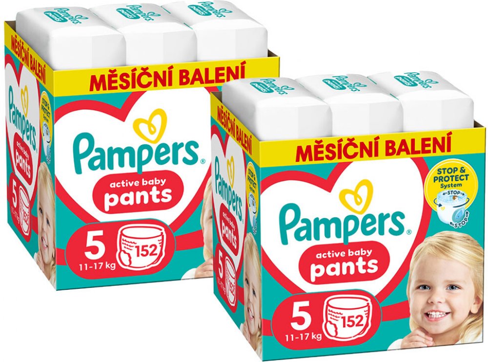 Poskytněte svému děťátku pohodlí a ochranu s plenkovými kalhotkami PAMPERS Pants. Prémiové plenky Pampers Pants byly navrženy tak, aby zajišťovaly maximální komfort a spolehlivou ochranu proti protečení. Díky technologii Stop & Protect a dvojitým ochranným bariérám plenky účinně zabraňují únikům vlhkosti kolem nožiček i na zádech, což přispívá k nerušenému spánku i radostným hrám během dne. 360° pružný pas usnadňuje oblékání a zajišťuje přiléhavé a pohodlné nošení. Navíc superabsorpční jádro okamžitě pohlcuje vlhkost a udržuje pokožku suchou až po dobu 12 hodin. Praktické lepicí pásky navíc umožňují snadnou a hygienickou likvidaci použitých plenek. 5 Velikost 12 – 17 kg Hmotnost dítěte 304 ks Počet ks v balení Klíčové vlastnosti plenkových kalhotek PAMPERS Pants 304 ksStop & Protect systém zabraňuje únikům vlhkosti360° pružný pas pro pohodlné...