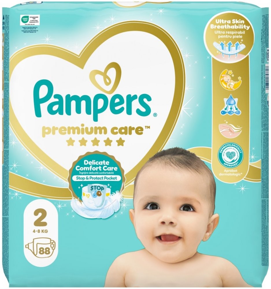 Podrobnosti o produktu 8006540857717 Nejlepší pohodlí a ochrana pro citlivou pokožku děťátka od Pampers. Dlouhodobý kontakt citlivé pokožky vašeho děťátka s močí a nečistotami může mít negativní dopad na její stav. Vaše děťátko se pak kvůli tomu může cítit nepohodlně a být neklidné. Plenky Pampers Premium Care jsou speciálně navržené tak, aby poskytovaly nejjemnější a nejšetrnější ochranu díky: - Exkluzivní vrstvě DERMACOMFORT s absorpčními póry, která okamžitě odvádí vlhkost a nečistoty od pokožky a uzavírá je uvnitř plenky. Citlivá pokožka vašeho děťátka tak zůstává v suchu a chráněná. - Milionům mikropórů, které umožňují vzduchu volně proudit dovnitř plenky a udržují tak pokožku v suchu. - Jedinečnému systému zabezpečení ve 3 směrech, který rychle absorbuje tekutinu a pomáhá předcházet protečení v pase a kolem nožiček pro až 12hodinovou ochranu proti protečení. - Nadýchaným ultra hebkým materiálům, které šetrně zabalí pokožku vašeho děťátka do pohodlí a poskytnou jí ochranu. Pampers Premium Care je světová jednička mezi značkami plenek. Pampers Premium Care jsou 100procent bezpečné pro pokožku vašeho děťátka, jsou dermatologicky testované a neobsahují žádný z 26 parfémů klasifikovaných směrnicí EU jako alergeny.