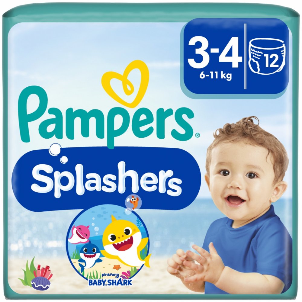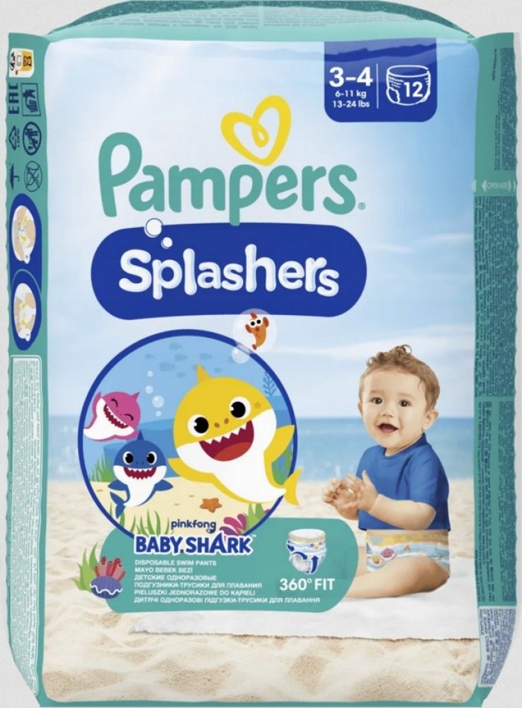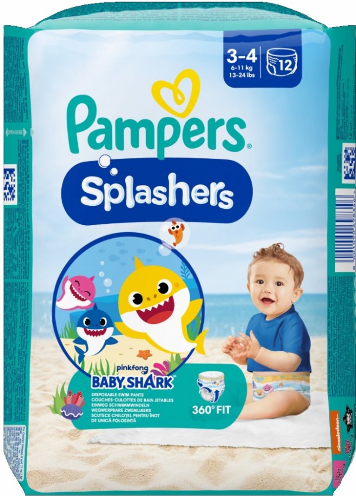 P Vaše děťátko může v jednorázových plenkových kalhotkách Pampers Splashers bezstarostně dovádět i ve vodě. Na rozdíl od běžných plenek Pampers Splashers ve vodě nenasáknou: padnou jako plavky a chrání jako Pampers. Díky nádhernému designu Baby Shark se brzy stanou pro jeho malé fanoušky nezbytností. Plenkové kalhotky Pampers Splashers Dual Protection mají dvojité manžety proti protečení, které spolehlivě chrání i ve vodě. Díky nim pohodlně padnou kolem nožiček vašeho dítěte a pomohou zadržet nečistoty. Pampers Splashers jsou proto ideální plenkové kalhotky do bazénu, na pláž, do akvaparku apod. Jejich jedinečný 360° pružný pas pohodlně sedí a snadno se natahuje a svléká – i když je mokrý. Pampers Splashers jsou také vybaveny bočními pásy, které se dají snadno roztrhnout pro rychlou likvidaci a méně nepořádku. Vlastnosti360° pružný pas dokonale padne na všech stranách, Boční pásy, které lze snadno roztrhnout pro snadné svlékání, Dvojité ochranné manžety, které pomáhají předcházet úniku kolem nožiček, Padnou jako plavky, chrání jako Pampers, S úžasnými obrázky Baby Shark, Ve vodě nenasáknou, takže jsou pohodlné mokré i suché