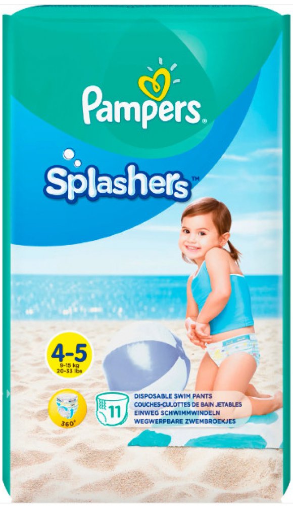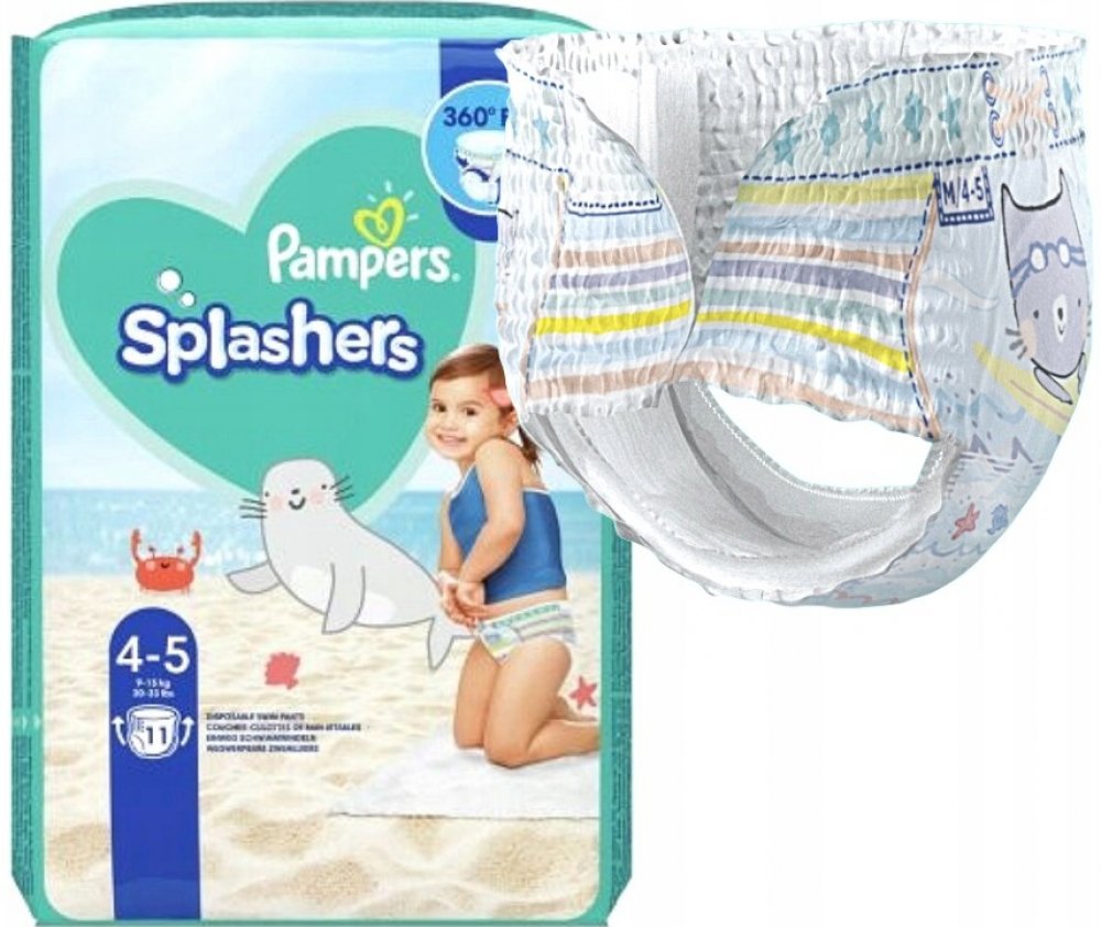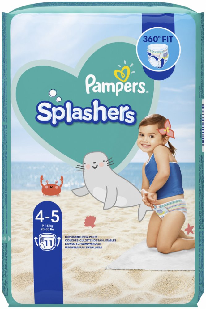 Vaše dítě může bez obav dovádět ve vodě s jednorázovými plavkovými kalhotkami Pampers Splashers. Plavkové kalhotky Pampers Splashers jsou navrženy tak, aby se ve vodě nedošlo k nasáknutí, což zajišťuje pohodlné nošení jak v suchu, tak i po namočení. S dvojitými lemy proti úniku nabízejí spolehlivou ochranu ve vodě. Tyto kalhotky se přizpůsobí nožičkám vašeho dítěte a pomáhají zadržet nečistoty. Jsou ideální pro plavání v bazénu, na pláži, v akvaparku a podobně. Plavkové kalhotky Pampers Splashers mají elastický pas po celém obvodu, který jim dodává vzhled plavek a usnadňuje jejich oblékání a svlékání i za mokra. Mohou být snadno roztrženy na bocích, aby se pohodlně svlékly, aniž by zanechaly nepořádek. Na těchto kalhotkách jsou vyobrazeny obrázky související s plaváním, což jim dodává vzhled opravdových plavek. Díky Pampers Splashers si ve vodě užijete ještě větší zábavu.