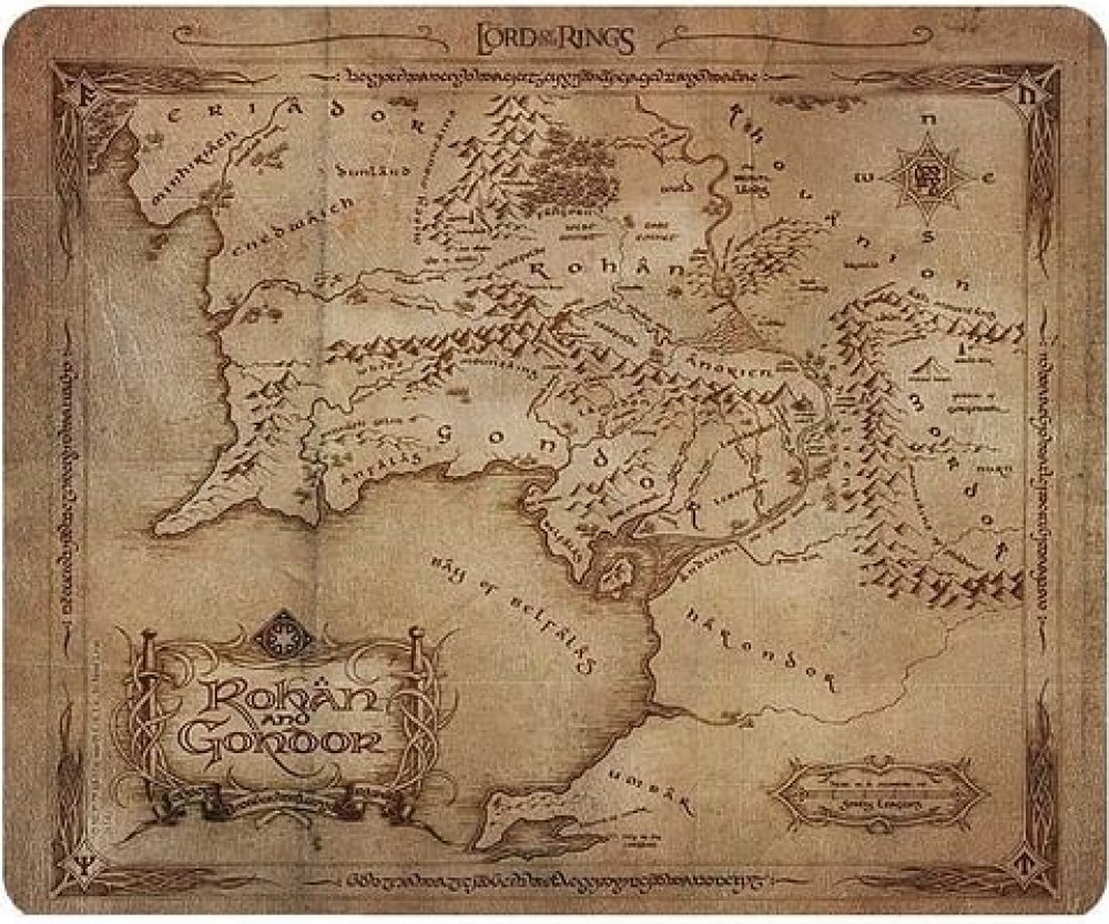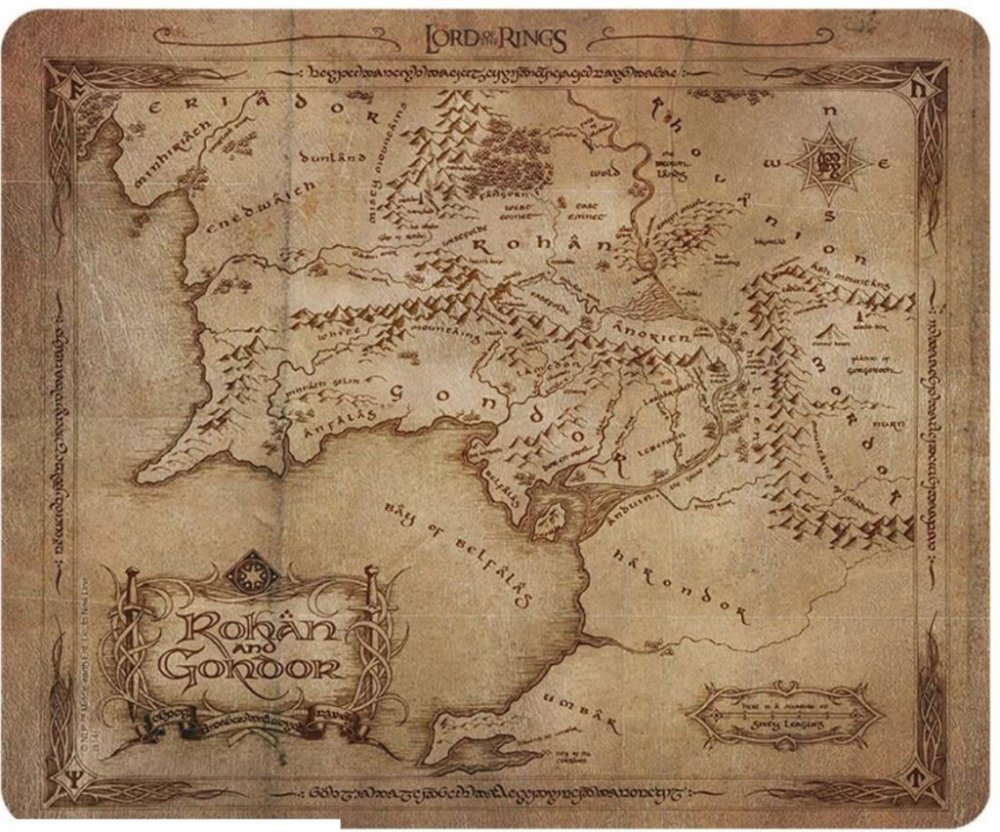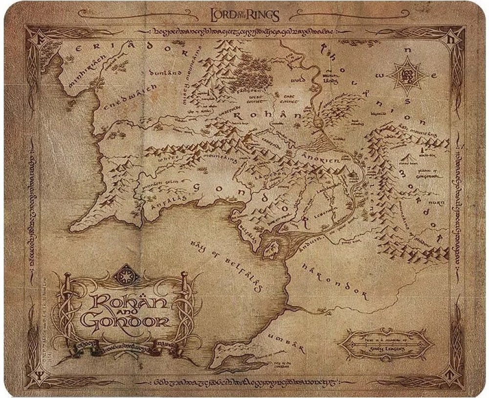Jste fanoušci klasických map? Díky této mapě z Pána prstenů se už nikdy neztratíte v zemích Rohanu a Gondoru! Podložka pod myš s protiskluzovou základnou a s grafikou mapy z trilogie Pán prstenů je nutností každého fanouška a nesmí tak chybět na žádném herním stole.