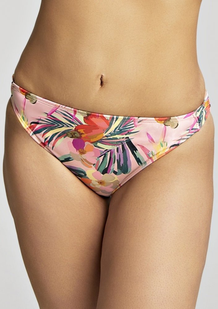 Plavky z nové kolekce britské značky Panache Paradise. Kalhotky jsou klasického střihu, mírně vykrojené. Kalhotky mají letní, květinový potisk, na bocích jsou našitá poutka, která jsou navzájem překřížená a tím dělá plavky zajímavé. Materiál obsahuje vlákno XTRA LIFE LYCRA, které je 5-10x odolnější, než běžný Elastan. Zaručuje trvalý tvar a odolnost materiálu vůči slunečnímu záření, vodě v bazénec...