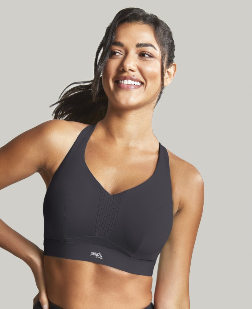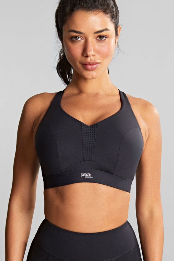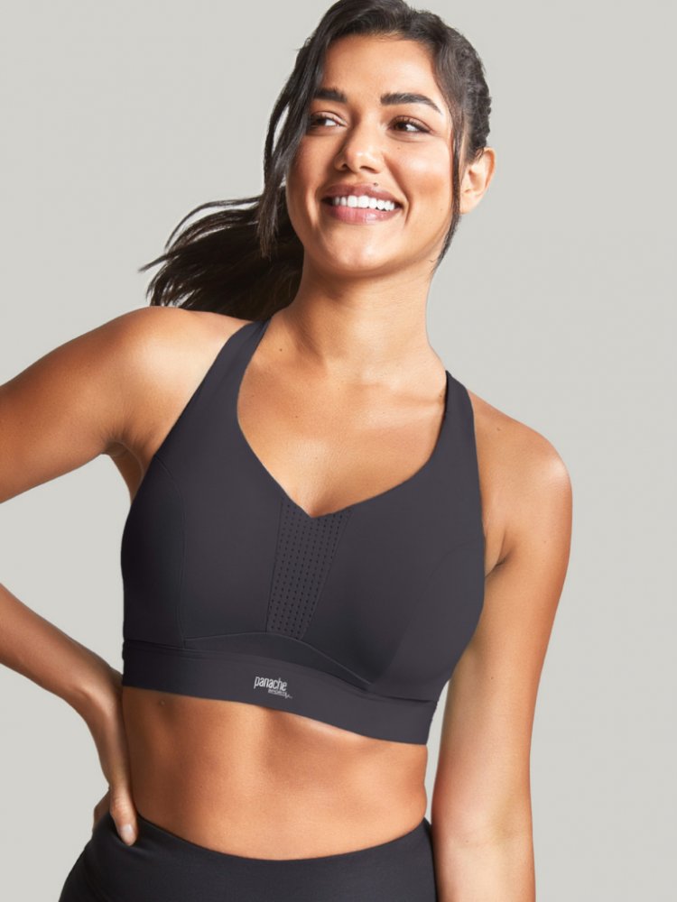 Sportovní podprsenka Panache představuje pohodlný a zároveň funkční kousek spodního prádla, který vám přijde vhod jak při sportovních aktivitách, tak i na každodenní nošení.Podprsenka s kosticí poprsí pevně zafixuje a sníží jeho pohyblivost. Při sportu jsou prsa vystavena intenzivnímu pohybu, který může nadměrně zatěžovat pojivovou tkáň. Správně zvolená sportovní podprsenka poskytne vašemu poprsí potřebnou oporu a ochrání ho před poškozením. Černá podprsenka s měkce podloženými ramínky vás nebude nikde tlačit. Zapínání má vzadu podložení aby netlačilo a ramínka lze sepnout i do kříže. Lehký a vysoce prodyšný materiál z mikrovláken účinně odvádí vlhkost od pokožky, zajišťuje maximální komfort a předchází podráždění.