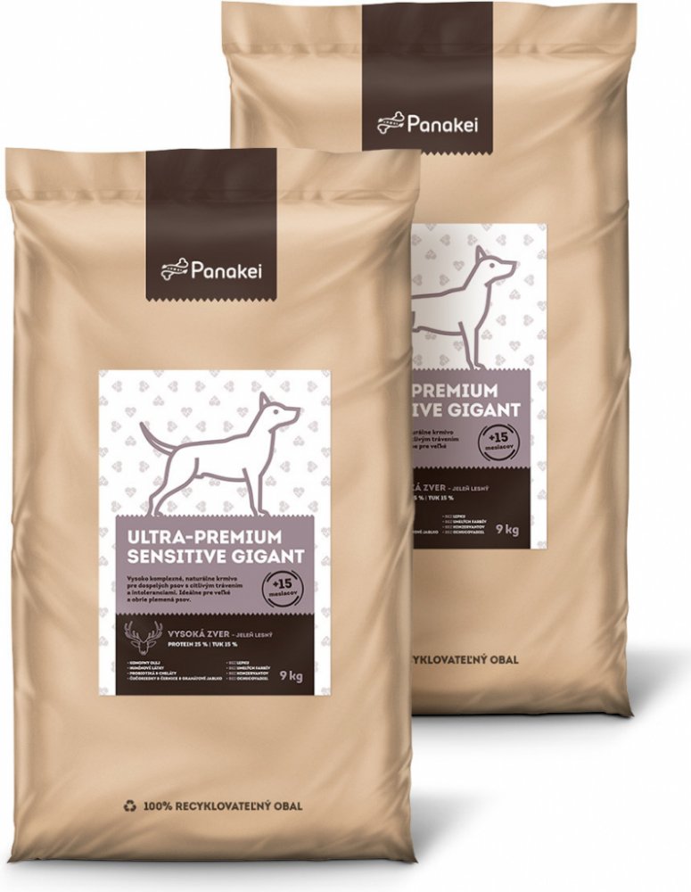 Panakei pro dospělé a seniory pro velká plemena s běžnou aktivitou zvěřinové Panakei 18 kg suché 20.0 mm 25 % zelenina nízká (<200 mg) 15 % 3 % 1.45 % 1.1 % 9.0 % standardní středně (25-40%) standardní podporující (>24%) snadný přechod aktivní (probiotika) možné základní