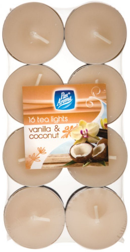PanAroma Vonné čajové svíčky Vanilla & Coconut 16ksPanAroma Vonné čajové svíčky Vanilla & Coconut 16ks přinášejí jemnou vůni vanilky a kokosu, která pomáhá vytvořit příjemnou a uvolněnou atmosféru v domácnosti. Sada 16 čajových svíček je ideální pro každodenní použití i pro speciální chvíle odpočinku, kdy chcete zpříjemnit interiér bez složitých příprav.K čemu produkt sloužíTyto čajové svíčky slouží k navození příjemné vůně a teplého světla v domácnosti. PanAroma Vonné čajové svíčky Vanilla & Coconut 16ks jsou určeny pro běžné pálení v obývacím pokoji, ložnici, koupelně nebo při posezení s přáteli. Díky praktickému balení je snadné mít zásobu po ruce.Praktické použití:Krátkodobé provonění místnosti během odpočinku.Vytvoření intimní atmosféry při večeru nebo hostině.Vhodné jako doplněk aromatických rituálů či relaxačních chvilek.Jaké má benefity16 ks v balení – dlouhodobá zásoba bez nutnosti časté výměny.Voňavá kombinace Vanilla & Coconut – příjemná, nevtíravá parfemace.Obsah esenciálních olejů pro autentický aromatický zážitek.Vyrobené z kvalitního vosku – rovnoměrné hoření a čistý plamen.Jak jej správně používatPři používání dodržujte základní opatrnost: svíčku vždy postavte na nehořlavý podklad nebo svícen. Svíčka je umístěna v hliníkovém obalu, který se při hoření zahřívá. Pálit je vhodné v bezvětří a do doby doporučené pro čajové svíčky. Po uhašení nechte svíčku vychladnout před opětovným přesunutím.Proč si vybrat právě tento produktPanAroma Vonné čajové svíčky Vanilla & Coconut 16ks kombinují praktické balení s příjemnou vůní, která osloví zákaznice hledající jednoduché a efektivní řešení pro domácí provonění. Značka PanAroma je zaměřená na dostupné a kvalitní doplňky domova – tato sada nabízí dobrý poměr ceny a užitku.Tipy pro maximální efektivitu / zkušenosti spotřebitelůPro rovnoměrné rozvedení vůně zapalte více kusů najednou v prostornější místnosti.Umístěte svíčky do středu stolu nebo na polici, kde svícen zlepší rozptyl vůně.Po delším hoření nechte místnost vyvětrat a znovu zapalte dle potřeby.Shrnutí výhod produktu PanAroma Vonné čajové svíčky Vanilla & Coconut 16ksTato sada 16 čajových svíček nabízí jednoduchý způsob, jak přidat do domova příjemnou vůni vanilky a kokosu. Díky kvalitnímu vosku, esenciálním olejům a praktickému hliníkovému obalu jsou svíčky připraveny doplnit vaše večery o teplo a vůni bez složitého zacházení. Ideální volba pro každodenní použití i speciální příležitosti.