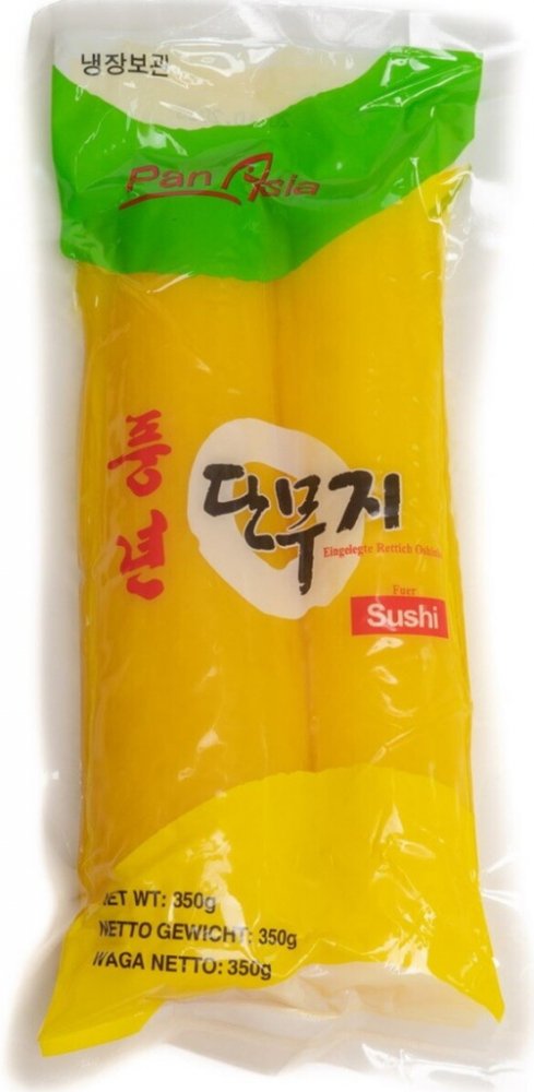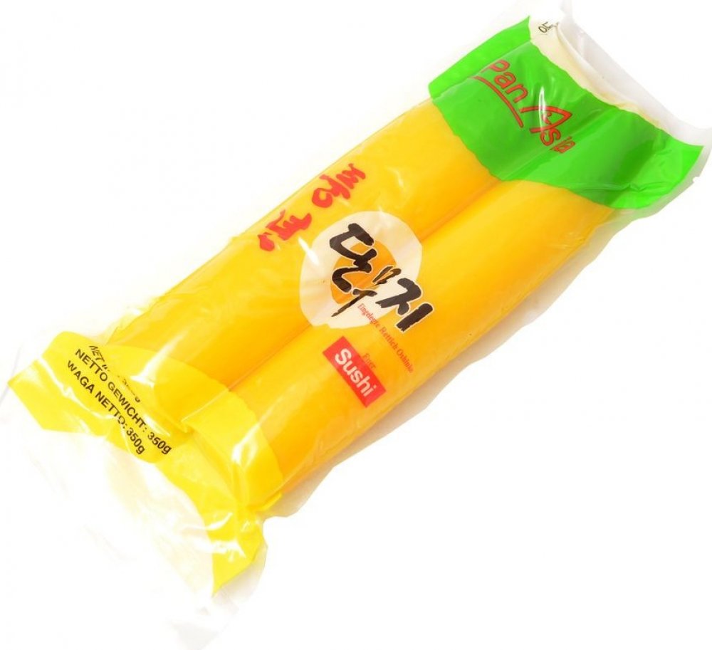 Menší balení nakládané žluté ředkve. Ředkev využijete při přípravě sushi či jako originální přílohu. Kromě názvu takuwantaro je známá také jako daikon.