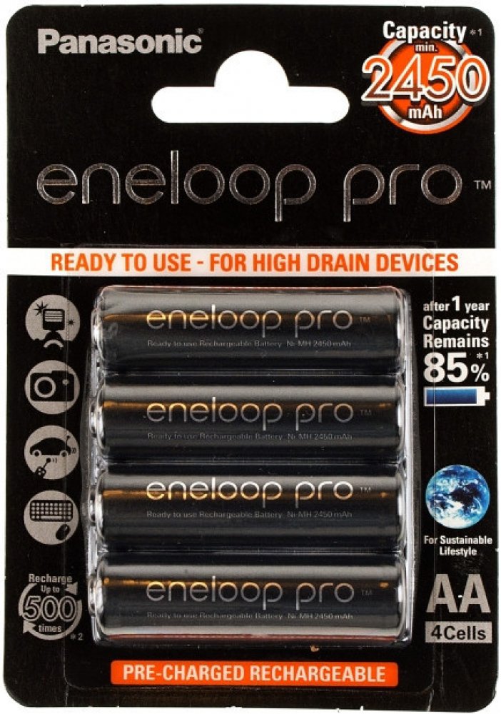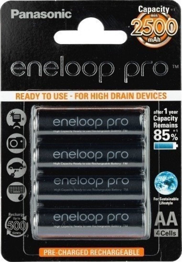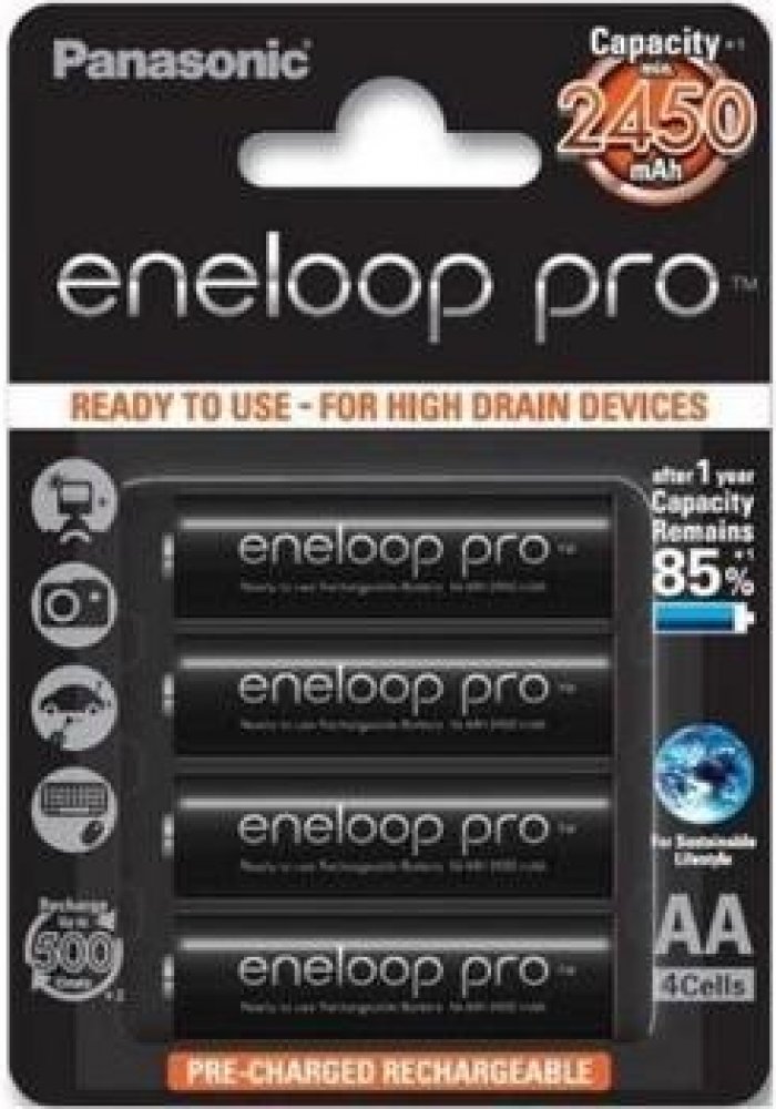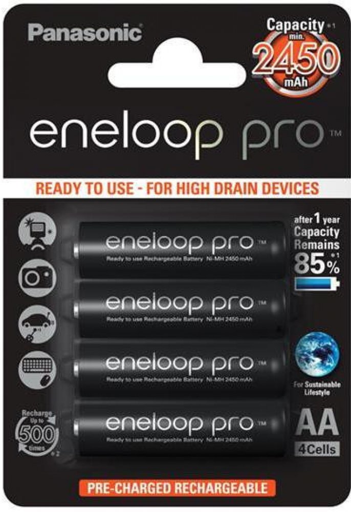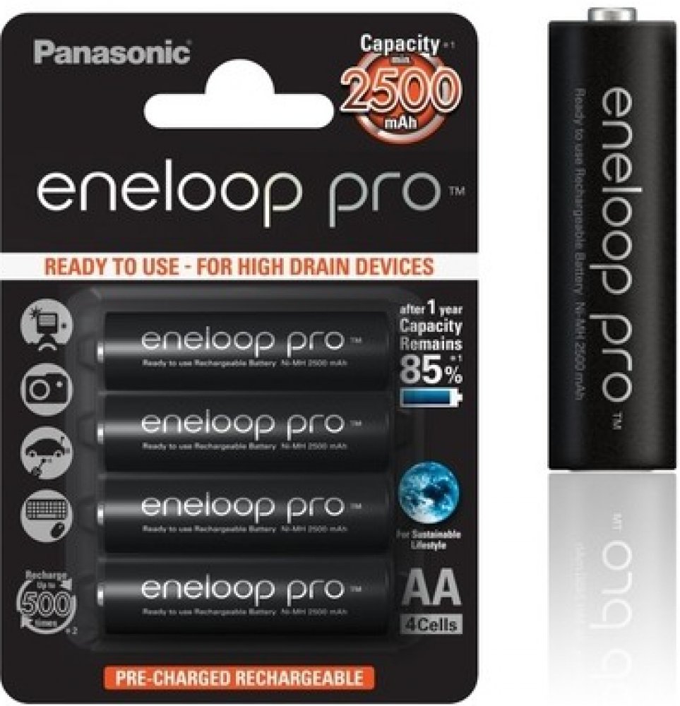 • kombinuje nejlepší vlastnosti AA alkalické (připraven k použití) a nabíjecí (opakovaně použitelné) baterie