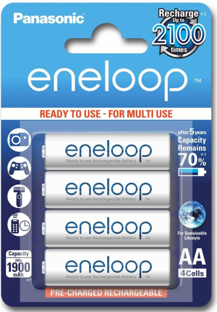 Eneloop AA je niklmetalhydridový (Ni-MH) článek s dlouhou životností, kterou můžete znovu dobít, a to až 2100krát. Šetří vaši peněženku