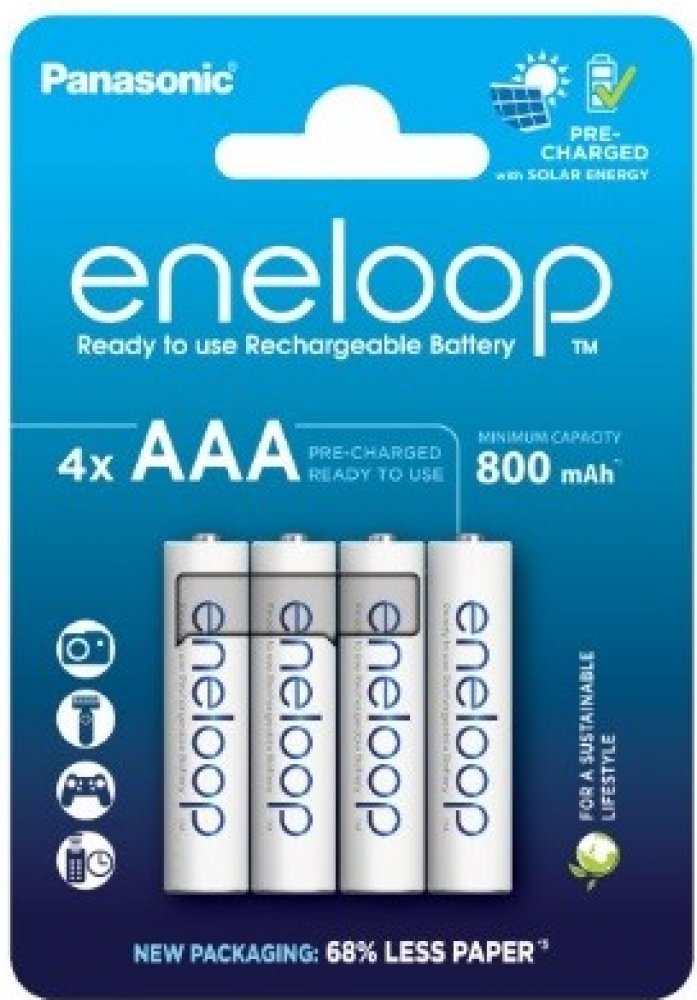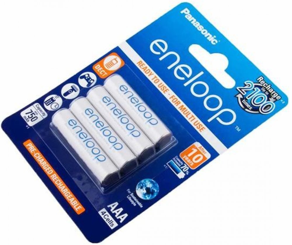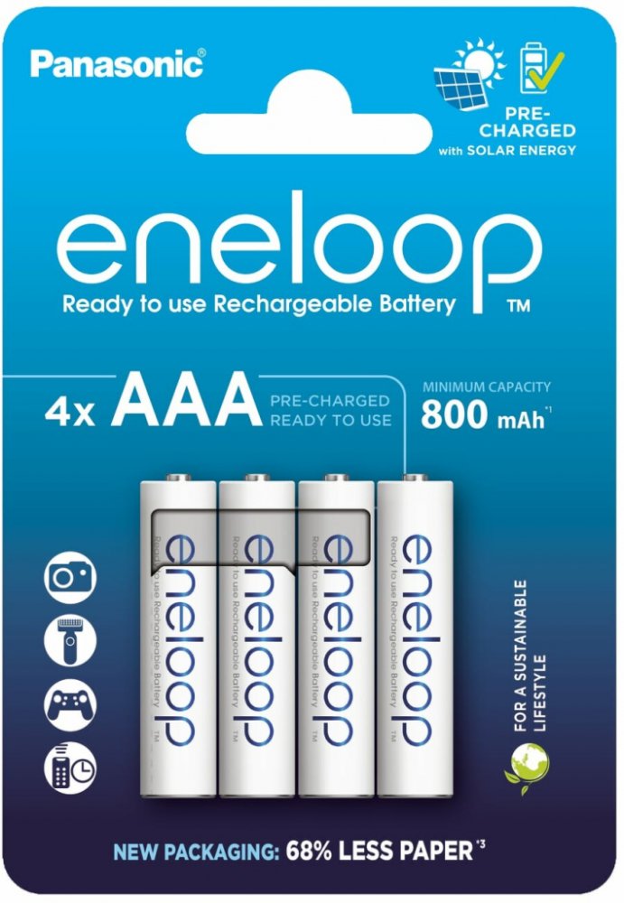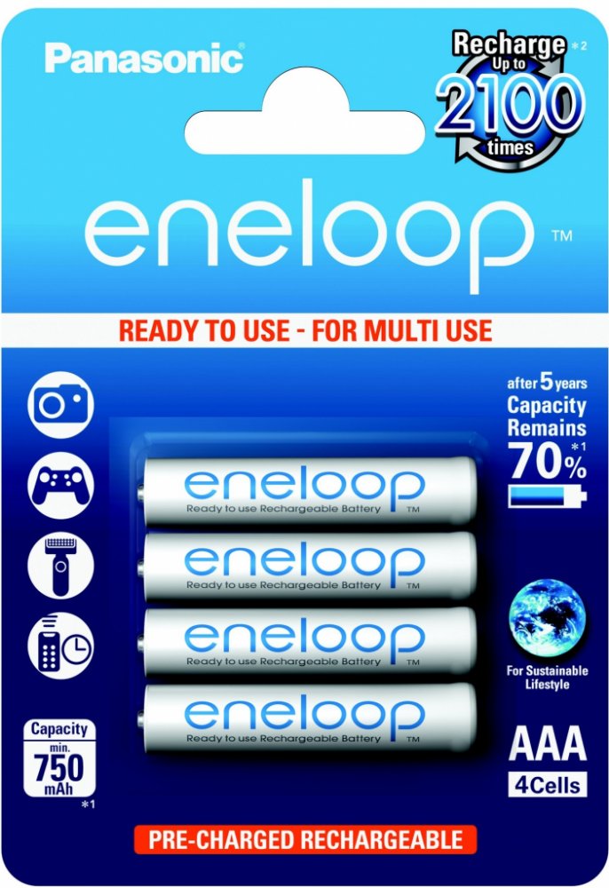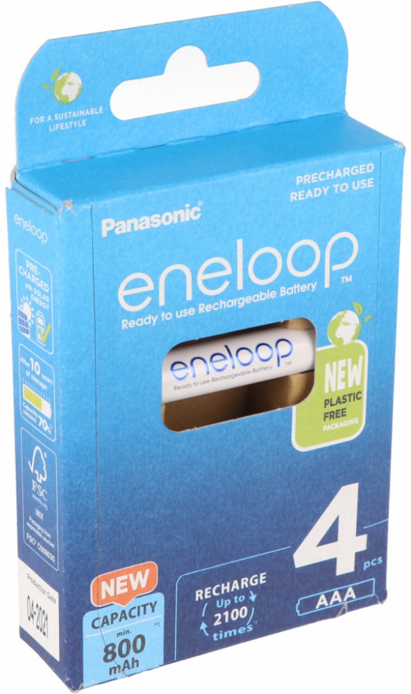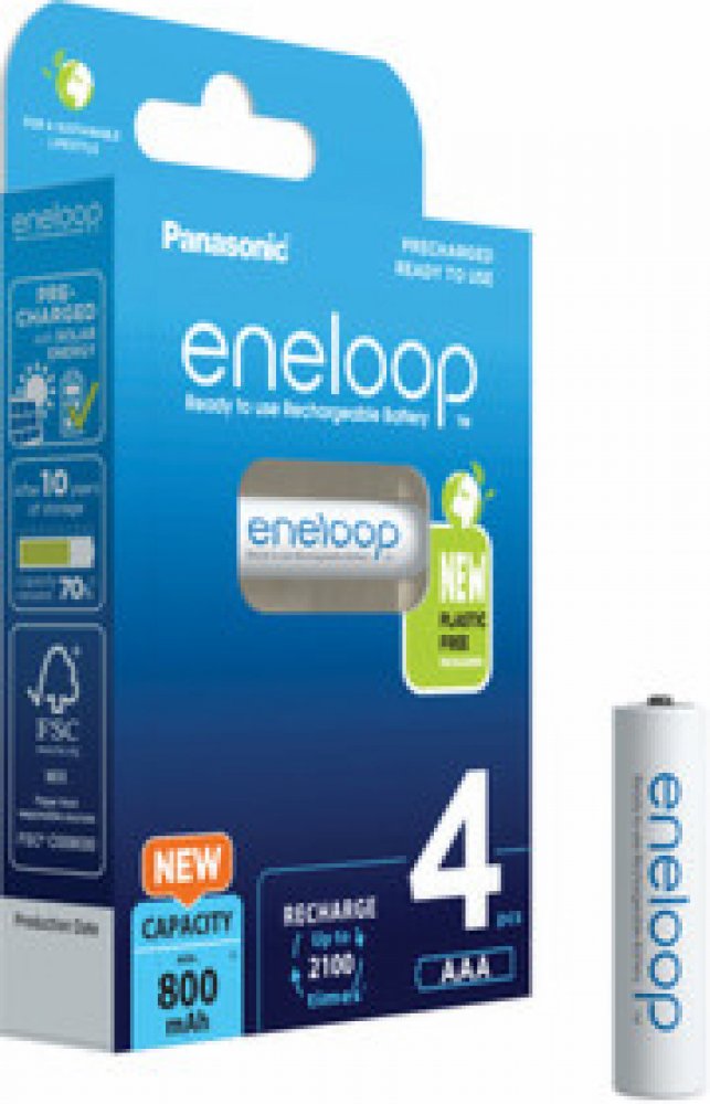 (BAL:4/80ks) Cena je uvedena za jeden kus. V balení na blistru 4ks.Nabíjecí mikrotužkové baterie Panasonic EKO Eneloop AAA (R03) je vylepšená série baterií, s novým ekologickým balením. Má až 2100 nabíjecích cyklů, udrží 70% kapacity po 10 letech. Funguje při nízkých teplotách až do -20 °C! Nabito ve výrobním procesu solární energií.- nikl-metal hydridová baterie- minimální kapacita: 800 mAh- napětí: 1.2 V- průměr: 10,5 mm- výška: 44,5 mm- až 2100 nabíjecích cyklů!- uchovává 70 % energie 10 let po nabití- funguje při nízkých teplotách až do -20°C- balení: 4 ks