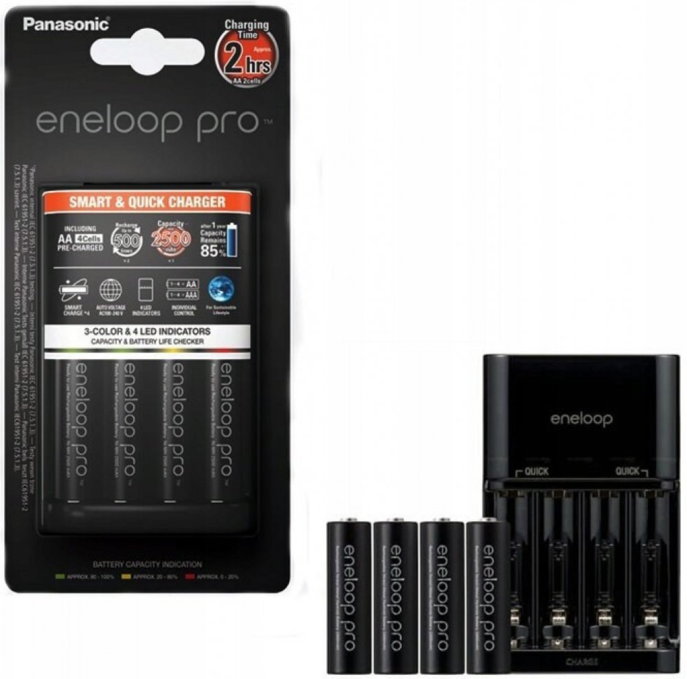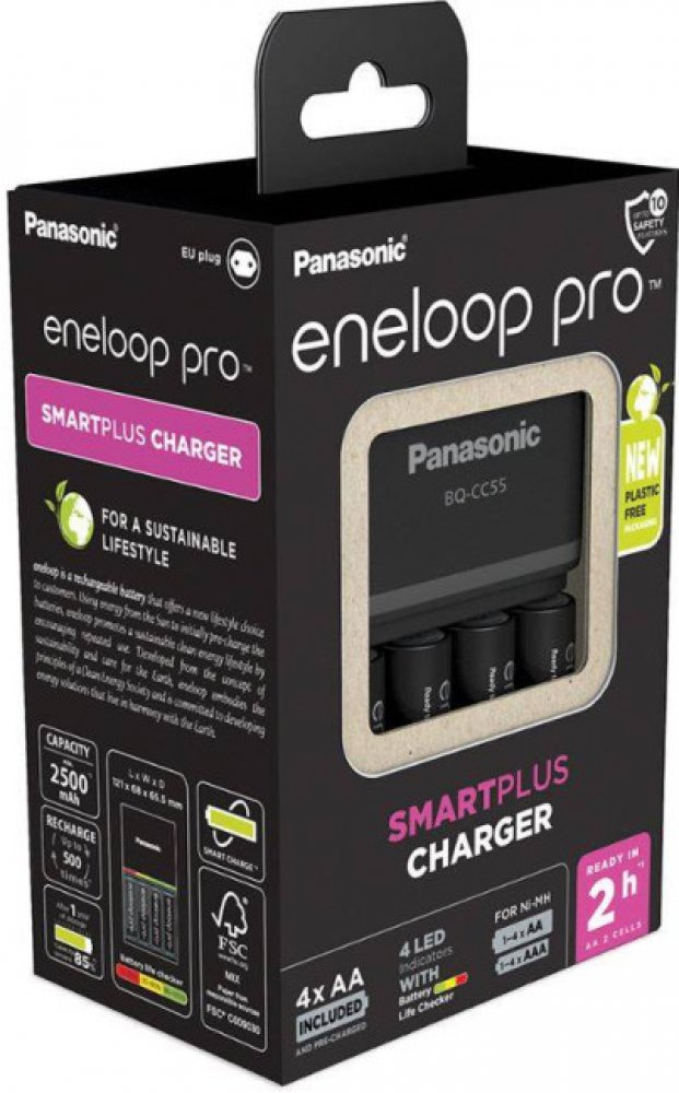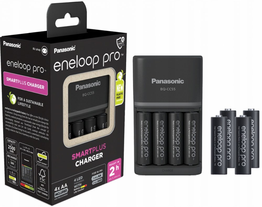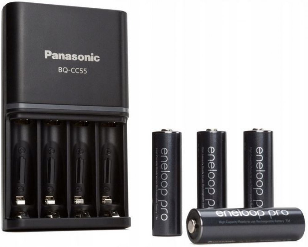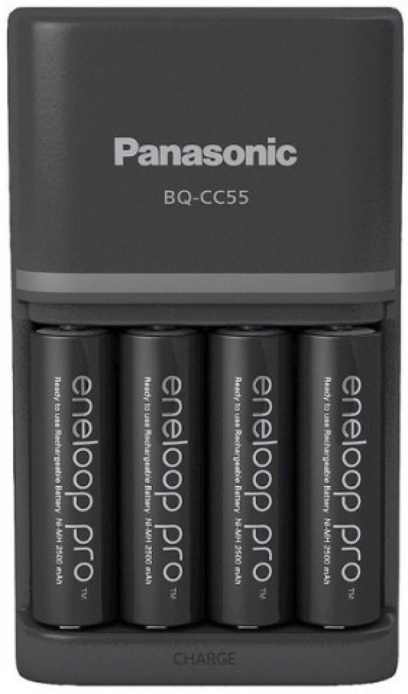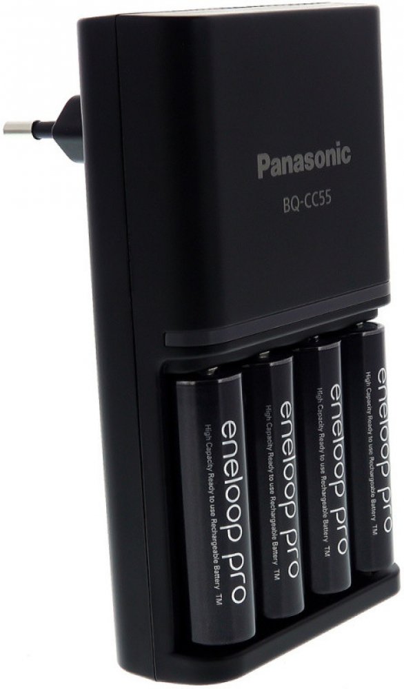 Panasonic Eneloop Charger BQ-CC55 + 4 x R6/AA Eneloop PRO 2500mAh BK-3HCDE K-KJ55HCD40E