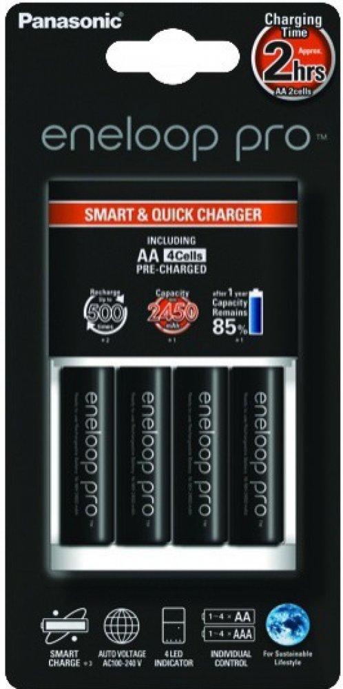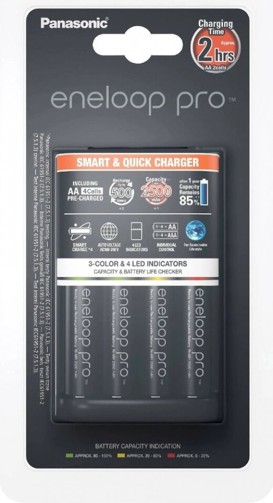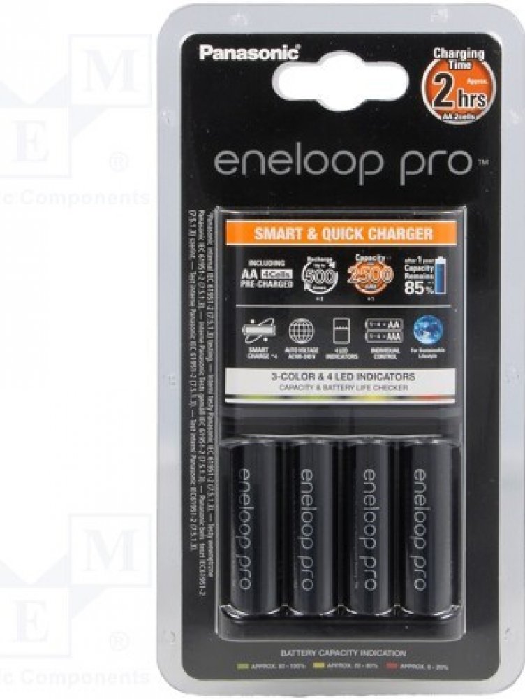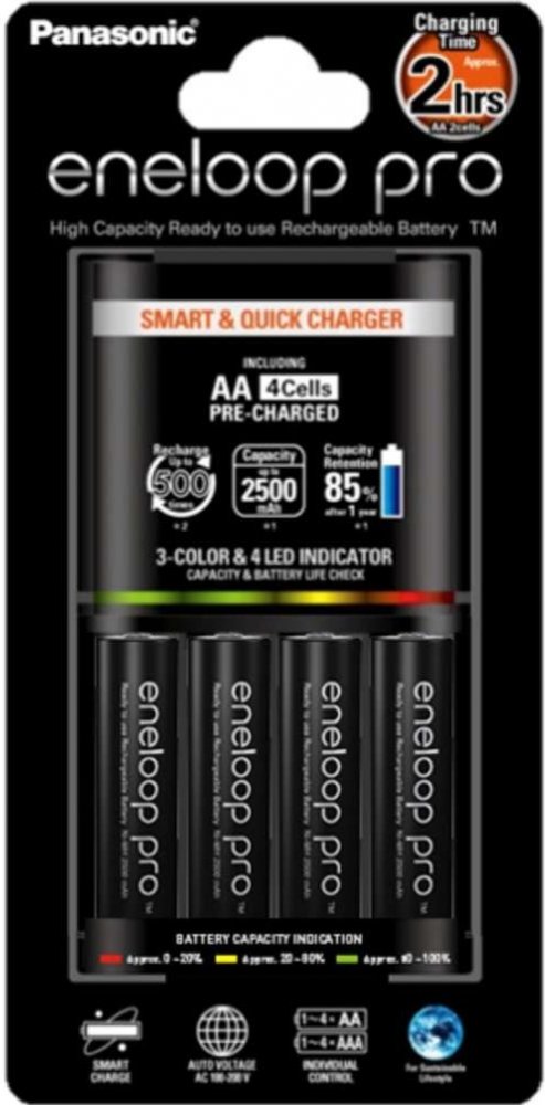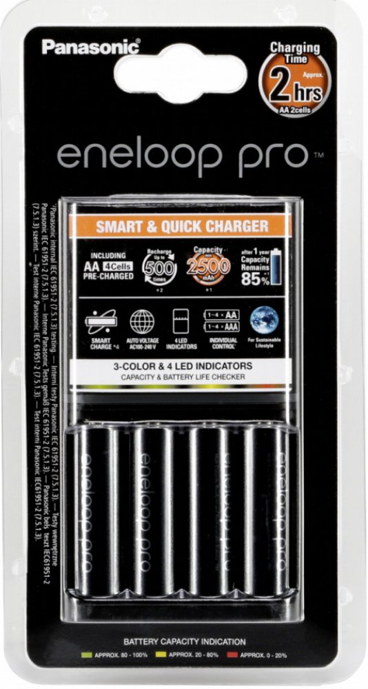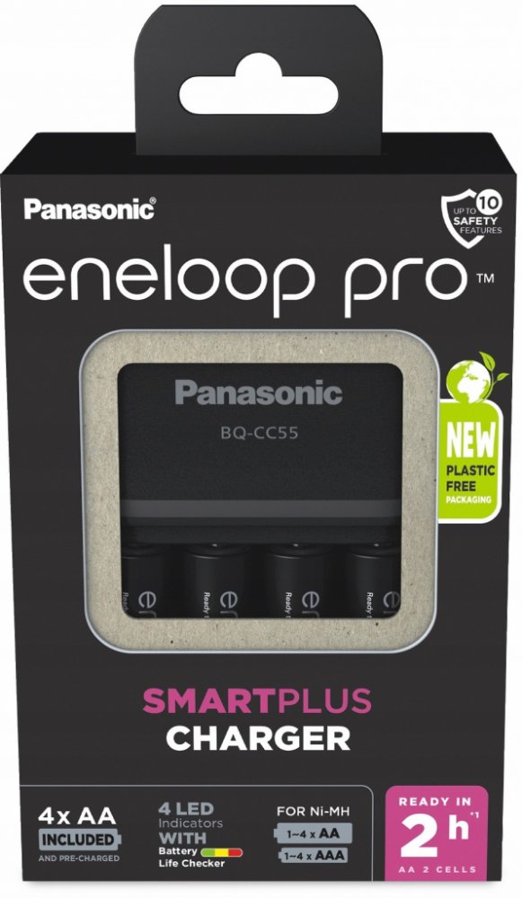 Panasonic Eneloop Charger BQ-CC55 + 4 x R6/AA Eneloop PRO 2500mAh BK-3HCDE K-KJ55HCD40E