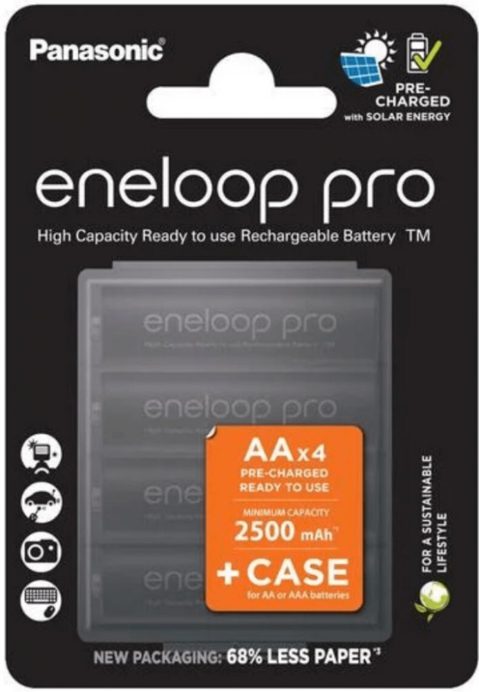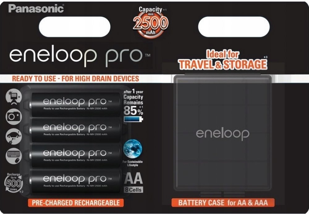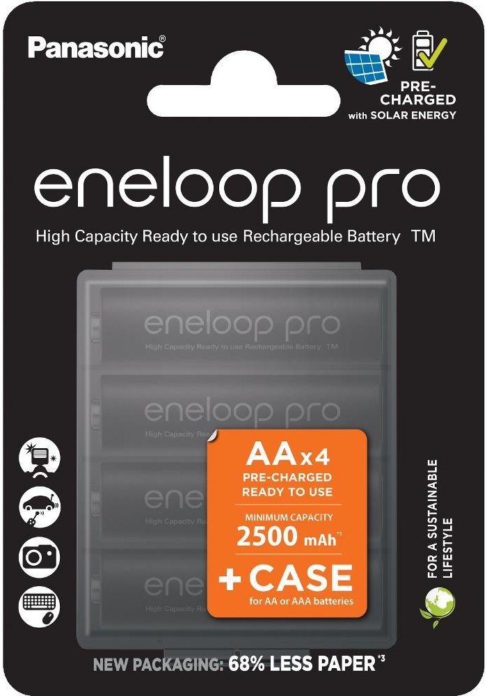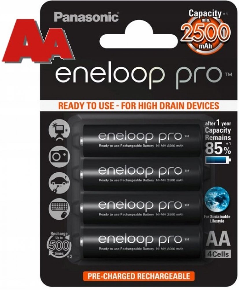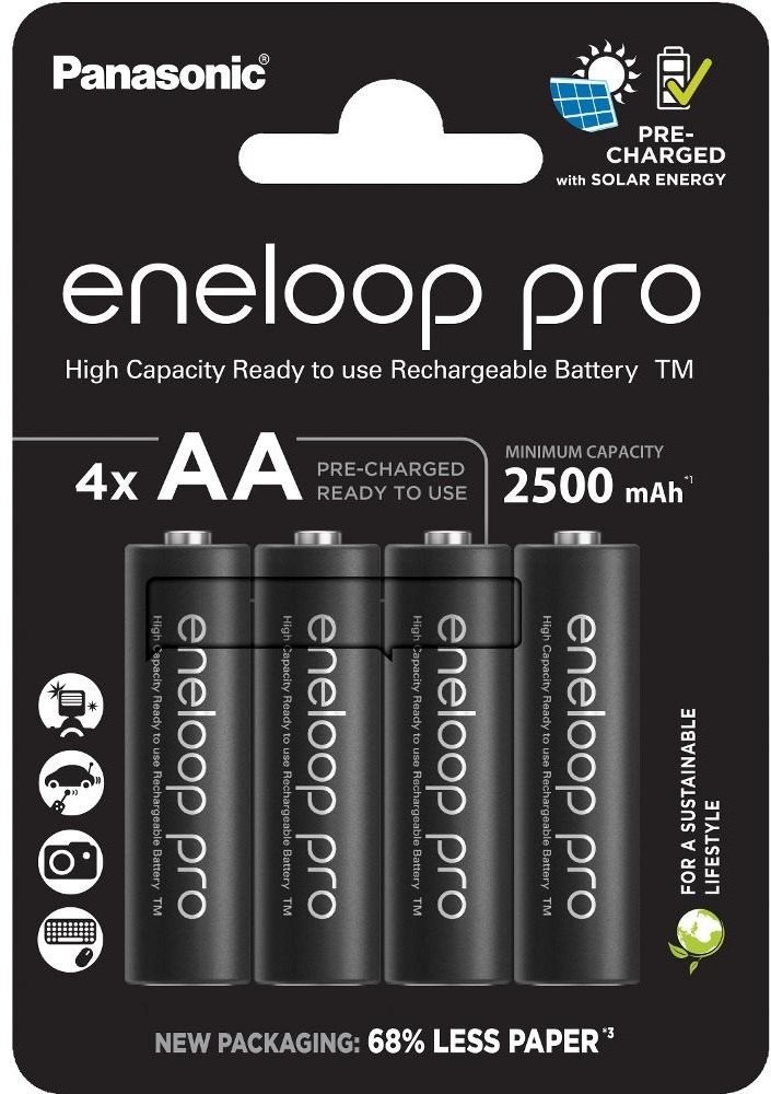 • kombinuje nejlepší vlastnosti AA alkalické (připraven k použití) a nabíjecí (opakovaně použitelné) baterie