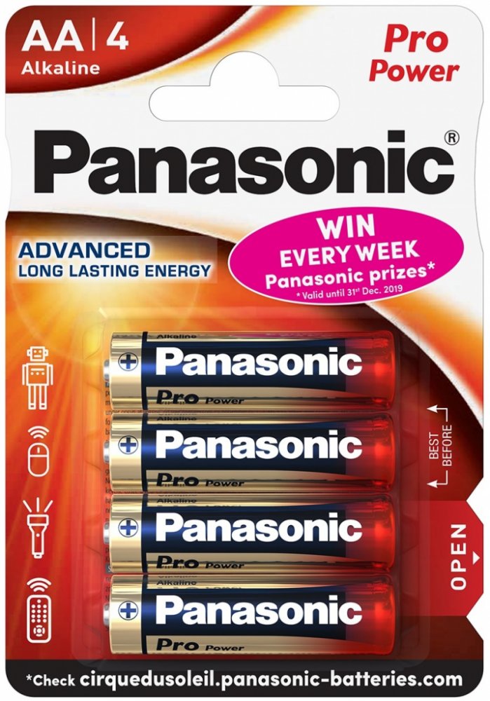 Baterie Panasonic Pro Power představuje vynikající zdroj energie pro vaše osobní zařízení. Až o 85% delší výdrž. Prémiová řada alkalických baterií: vyvinuta tak, aby kdekoli a kdykoli spolehlivě dodávala energii. Ideální pro přístroje se střední a vysokou energetickou náročností. Kompletní typová řada baterií.