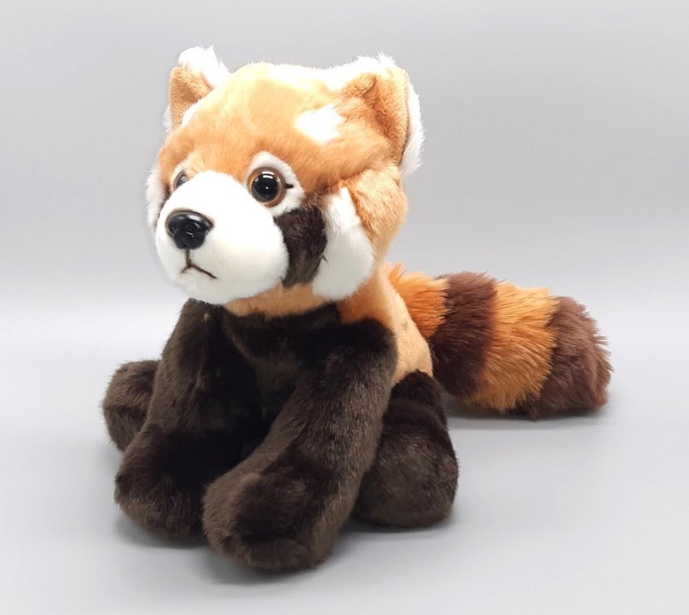 Plyšová panda červená o rozměru cca 25 x 18 x 14 cm. Věk 0+
