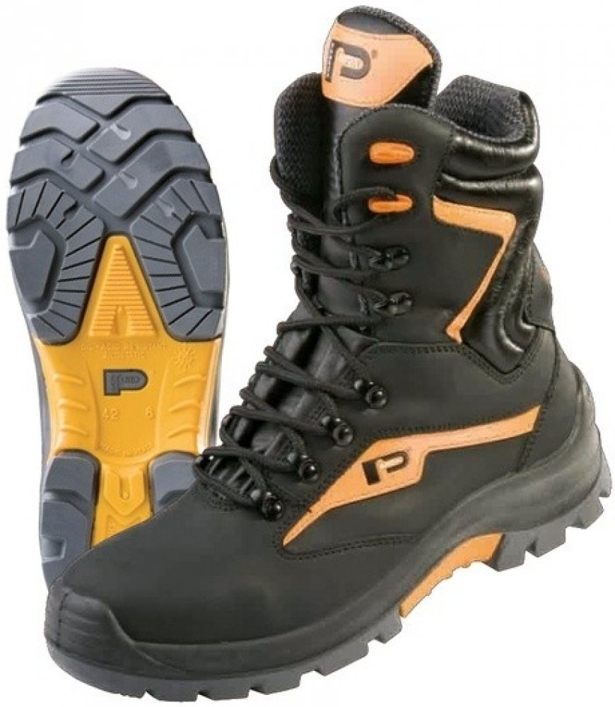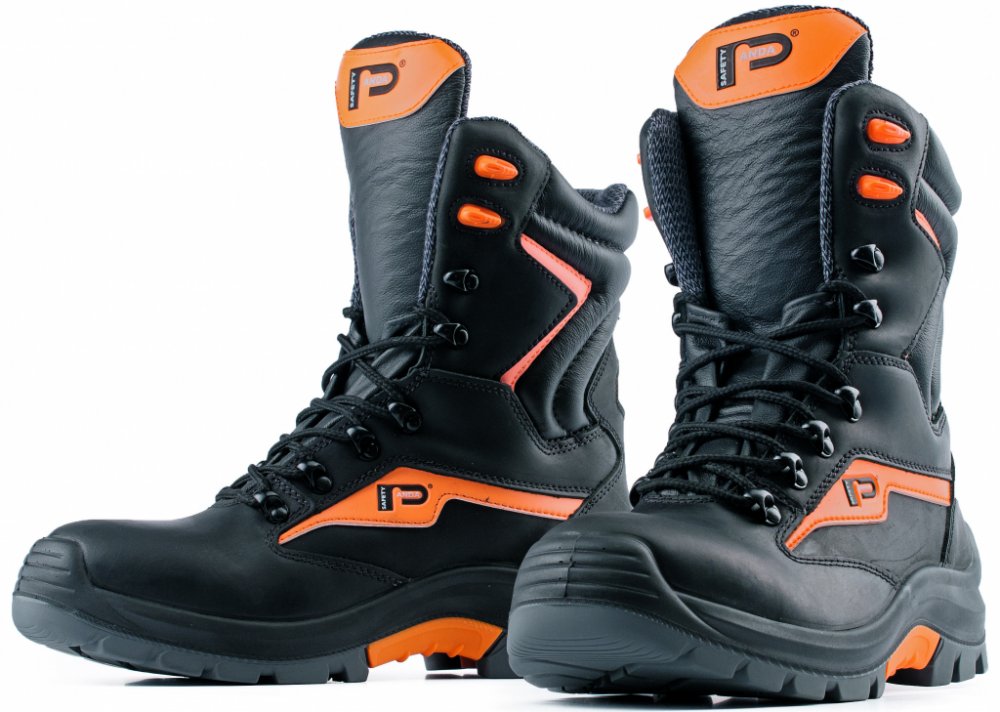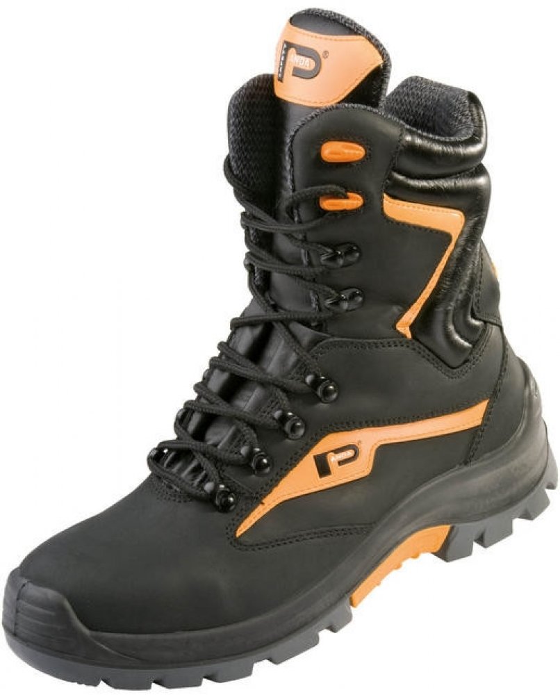 Vysoká pracovní obuv jménem Extreme Tector od italské značky Panda s nekovovou tužinkou ve špičce a nekovovou stélkou proti propíchnutí. PU/TPU podrážka rezistentní kyselinám a olejům, absorpce energie v patě a voděodolný svršek z prodyšné kůže.