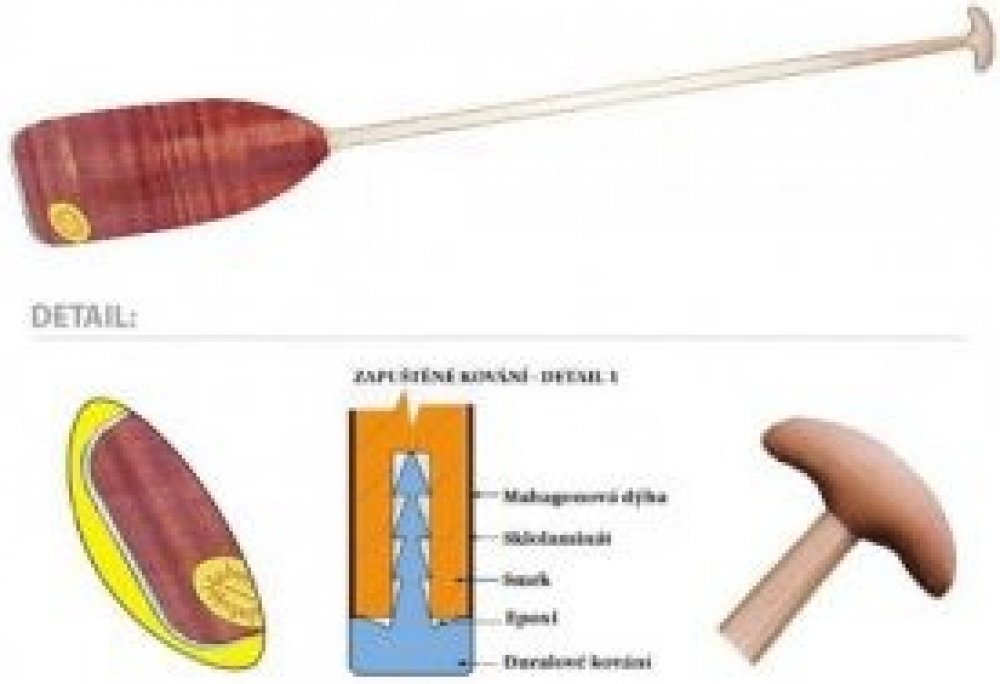 Dřevěné kánoistické pádlo. List s kováním. Dřevěné kánoistické pádlo je vhodné pro turistiku. . Dýhovaný list s duralovým kováním. Oválná žerď. Dřevěná hlavička máčená pod tlakem v oleji. Váha: 0,8 až 0,9 kg Délky: 140 - 160 cm (po 5 cm )
