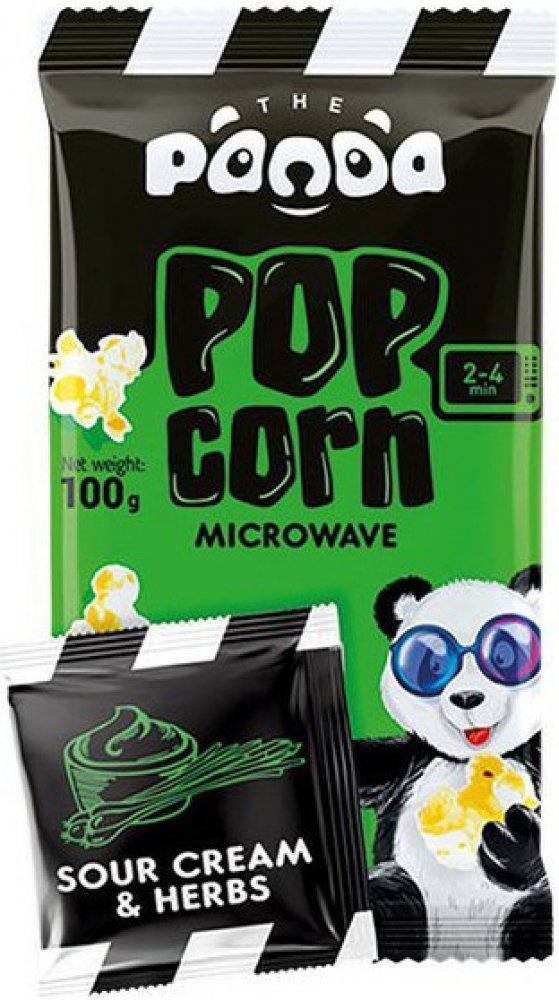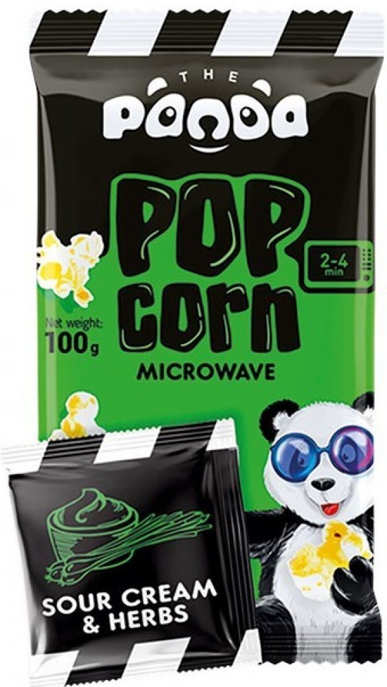 Země původu: Ukrajina, Země původu: Ukrajina, Výrobce: Boomza, Značka: Panda, Popis: Slaný - Panda Popcorn do mikrovlnné trouby s příchutí zakysané smetany a bylinek, Země: Ukrajina, Hmotnost: 100 g, Složení: kukuřice (78 %), palmový olej, směs zakysané smetany a bylinek (4,5 %) (sůl, látky zvýrazňující chuť a vůni (?621, ?627, ?631), aroma zakysaná smetana, sušená zelená cibule, přírodní cibulový...