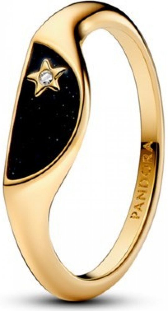 Vyvolejte sílu protikladů s pečetním prstenem Pandora ME Rozpůlený smalt. Prsten pozlacený 14karátovým zlatem zdobí půlkruh s vyvýšenou hvězdou, v jejímž středu je zasazen třpytivý kámen obklopený třpytivým černým smaltem. Tento černo-zlatý prsten můžete nosit samostatně nebo se stříbrným pečetním prstenem Pandora ME Rozpůlený smalt, který je navržen tak, aby se hodil k tomuto prstenu a hvězdy byly umístěny proti sobě. Co takhle prsten ve velikosti 50?