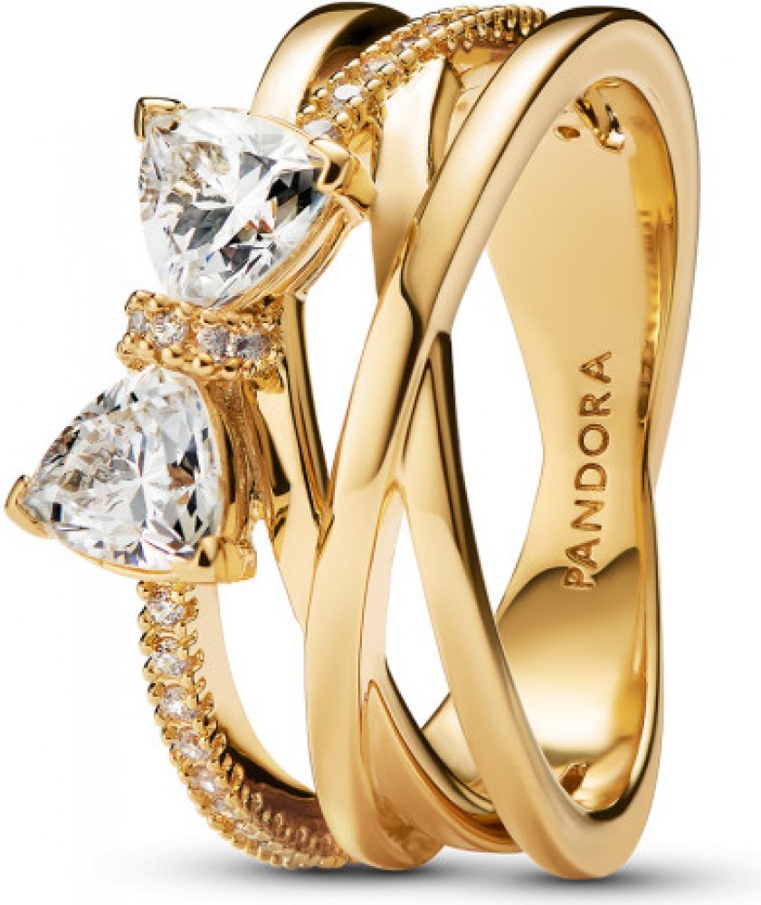 Dodejte svému stylingu třpyt a hřejivou atmosféru s prstenem PANDORA Třpytivá mašlička a překřížená stužka z naší jedinečné směsi kovů pozlacené 14karátovým zlatem. Tento výrazný šperk je ozdobený motivem třpytivé mašličky obklopené pavé. Kroužek má překřížený design s jednou řadou třpytu a třemi leštěnými liniemi. Prsten se dokonale hodí pro mimořádné příležitosti i na každý den, vždy dodá outfit...