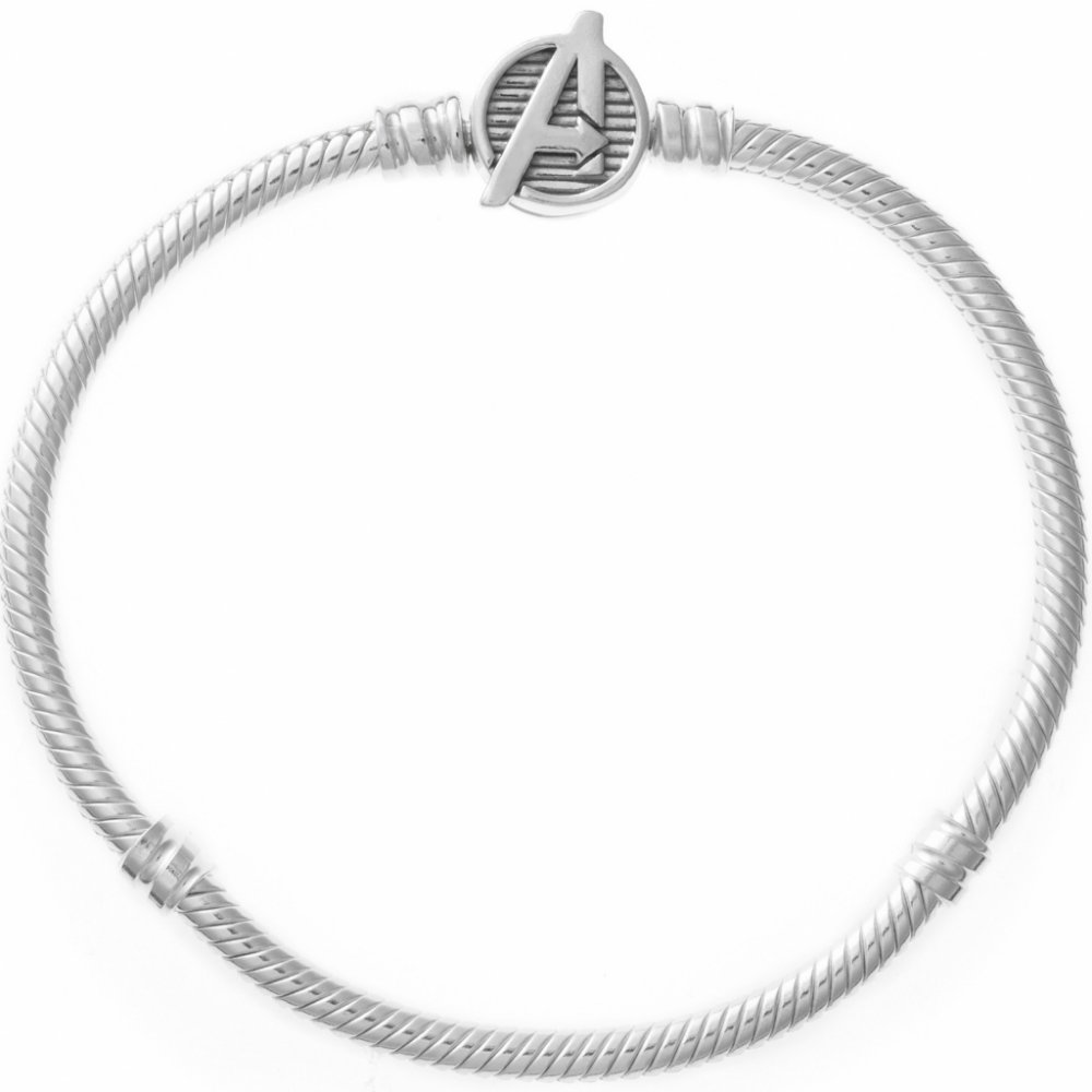 MARVEL X PANDORA ikonický náramek s logem Avengers s gravírováním "WE ARE HEROES" (My jsme hrdinové). Vstupte do filmového světa Marvel a oslavte ikony, které v něm žijí. Marvel je plný tužeb, snů, akce, ale také humoru. Ukažte světu, co máte rádi. Náramek si vybírejte o 2-3 cm větší než je obvod Vašeho zápěstí, abyste měli prostor pro korálky. V případě, že Vám velikost nesedne, kontaktujte nás. Nenošený náramek Vám rádi vyměníme. Tuhost náramku nošením povolí a náramek se mírně roztáhne o 2-4 mm.
