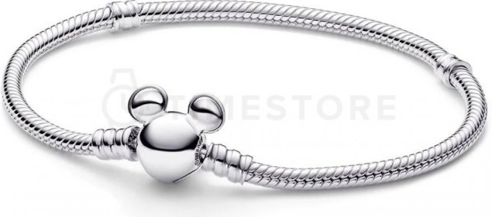 Noste svou sbírku přívěsků PANDORA Disney x Pandora na hadovitém řetízkovém náramku se sponou PANDORA Disney Mickey Mouse. Tento hadovitý řetízkový náramek ze sterlingového stříbra zdobí spona inspirovaná ikonickou siluetou hlavy Mickey Mouse. Sponu snadno otevřete a zavřete stisknutím Mickeyho uší proti sobě. Náramek má dva závity (vyvýšené oddělovače přívěsků) a pojme 16-18 přívěsků nebo visacích přívěsků. Dokonalý způsob, jak ukázat své oblíbené šperky Disney. Tento náramek má délku 17 cm.