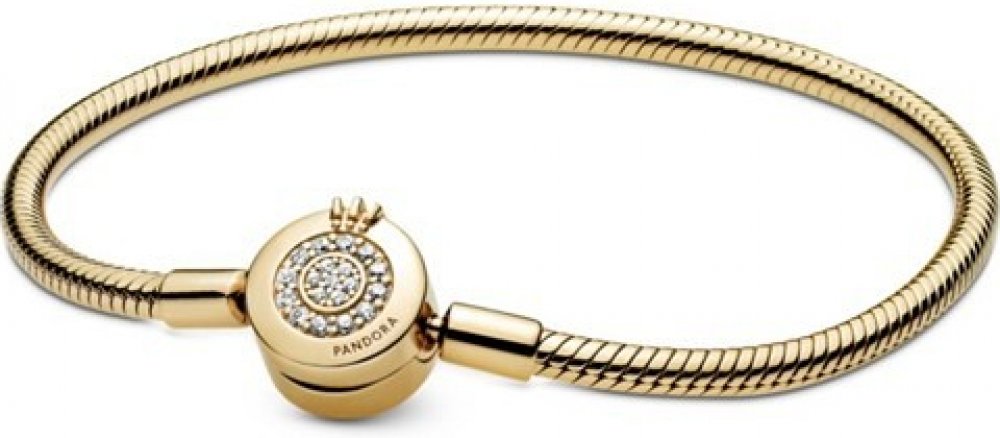Náramek PANDORA Shine Třpytivé O s korunkou je vyroben ze stříbra a zlacen vrstvou 18karátového zlata. Svůj lesk si zachová po dlouhou dobu. Ozdobte se zlatým náramkem, který je určen k dalším osobitým variacím. Prohlédněte si přívěsky a klipy Pandora z kolekce Shine a utvořte si vlastní náramkový příběh. Tento náramek je v délce 18 cm.