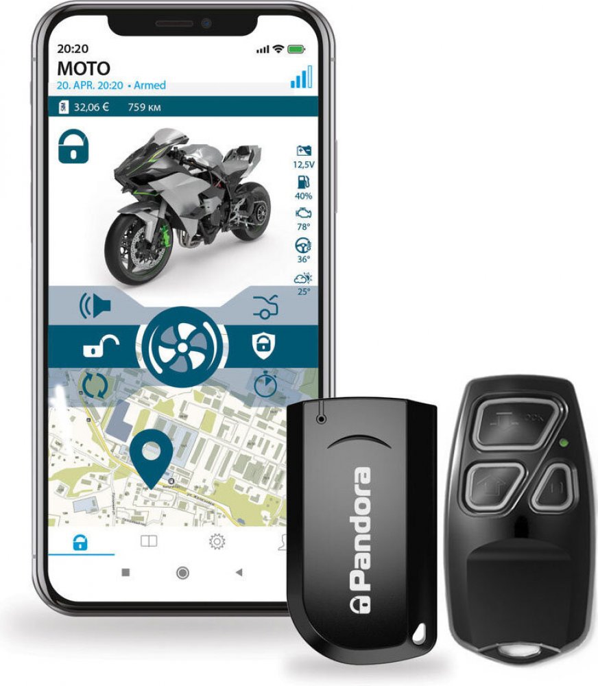 POZOR! TENTO ALARM JE URČENÝ VÝHRADNĚ PRO MONTÁŽ V AUTORIZOVANÝCH MONTÁŽNÍCH DÍLNÁCH. JEJICH SEZNAM VÁM MŮŽEME ZASLAT SPOLU S ALARMEM.VZHLEDEM K NUTNOSTI SPECIÁLNÍHO SOFTWARE NENÍ MOŽNÉ ALARM NAINSTALOVAT JINDE NEŽ V AUTORIZOVANÝCH MONTÁŽNÍCH FIRMÁCH!!! Tyto firmy nejsou shodné se sítí námi nabízených montážních míst. Aktuálně lze instalaci alarmu Pandora provést pouze u nás v Ostravě nebo u partnera v Praze. Pandora SMART MOTO je nejmodernější GSM motoalarm na trhu. Poskytuje kompletní kontrolu systému pomocí mobilní aplikace (Android a iOS).Designové bezkontaktní přívěšky sloužící na identifikaci majitele s možností ovládání v režimu „hands-free“, ale i funkce detekce rušičky zaručí nejvyšší úroveň zabezpečení před neoprávněným použitím.Charakteristika systémuVoděodolná řídící jednotkaPodpora mobilní aplikace pro iOS a AndroidKomunikace pomocí GSM a GPRSIntegrovaná záložní baterieKontrola napětíHistorie tras a událostí zobrazovaná v mobilní aplikaciHands Free režim pro aktivaci/deaktivaciRežim kódovaný imobilizérDialogové kódování řídících příkazů, individuální 128bitový šifrovací klíčPodpora přídavných zařízení BluetoothOvladač imobilizéru (tag)Kódovaná komunikaceJedinečný 128-bitový šifrovací klíčLED indikaceTlačítko pro zapnutí/vypnutí servisního režimuIntegrovaný akcelerometrBaterie CR-2032 (není součástí balení)Hlídané zóny motocykluZavazadlový prostorZapalováníBrzdy, spojkaOtřesový senzor 1. úroveň (varování), 2. úroveň (poplach)Pohybový senzorNáklonový senzorPokles napětíObsah baleníŘídící jednotkaDálkový ovladač (tag) imobilizéru 2xServisní tlačítkoInstalační návodSnímač teploty motoruInstalační kabelážUpínací sadaBlokovací reléKrabiceSiréna (Pandora PS-330)Magnetický spínač 2xAutoalarmy značky Pandora nedodáváme do Slovenské Republiky.