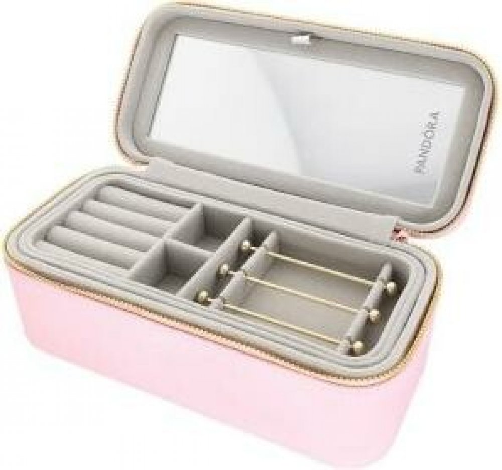 Představujeme dokonalé řešení pro uložení vašich šperků Pandora - speciálně navržené tak, aby chránilo a uchovávalo vaše oblíbené kousky v bezpečí. Naše chytře navržená šperkovnice má vnější povrch z texturovanéhoPolyuretana oddělené vnitřní přihrádky se sametovou výstelkou pro uložení různých šperků. Šperkovnice má odnímatelnou horní přihrádku na šperky pro vaše přívěsky, prsteny a náušnice, plochou vložku na náhrdelníky a samostatnou přihrádku na náramky. Šperkovnici můžete snadno uzavřít pomocí dvou D-kroužků na zipu a zrcátko uvnitř víka je praktické pro úpravu vašeho vzhledu - každý den znovu. Dokonalý domov pro vaše oblíbené kousky nebo promyšlený doplněk k jakémukoli třpytivému dárku.Vyobrazené šperky nejsou součástí balení.Výrobce: PandoraKategorie: DoplňkyKolekce: ŠperkovniceMateriál: textil, syntetická vláknaBarva: růžová, šedá, zlatáRozměry: hloubka: 200 mm; výška: 85 mm; šířka: 101 mmČíslo položky: A008 .