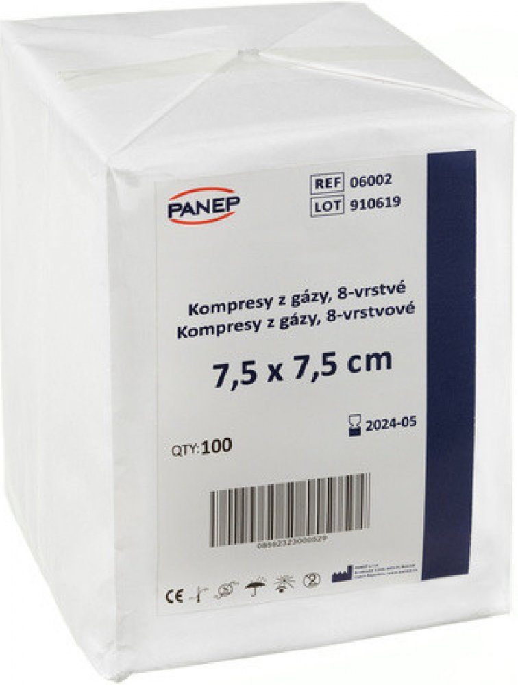 Kompresy se vyznačují všestranným využitím. Poslouží zejména při prvním ošetření, tedy k očištění a vysušení znečištěných poranění. Gázové hydrofilní kompresy z naší nabídky jsou vyrobeny ze 100% bělené bavlny. Mají několik vrstev, aby se co nejvíce omezila možnost prosáknutí tělní tekutiny (krve nebo hnisu) ven, tudíž zajišťují dokonalou savost. Použití: Čistění, vysoušení a ošetření ran, popř. zastavení krvácení. Při operačních výkonech slouží k nanesení dezinfekce na kůži a k absorpci tělních a jiných tekutin.Kompresy vysoké kvality určené k mnoha účelům.Čistá bavlna a vysoká sací schopnost.Kompresy mají založené okraje proti třepení.Sterilizační obal s peel efektem.Jedná se o zdravotnické prostředky.Složení:100% bělená bavlnaK dispozici v rozměrech a variantách balení: 5 x 5 cm / 5ks/balíček, 20bal/box, (100 ks v balení).7,5 x 7,5 cm / 5ks/balíček, 20bal/box, (100 ks v balení).10 x 10 cm / 5ks/balíček, 20bal/box, (100 ks v balení). 7,5 x 7,5 cm / 2ks/balíček, 50bal/box, (100 ks v balení).10 x 10 cm / 2ks/balíček, 50bal/box, (100 ks v balení). 5 x 5 cm / 10ks/balíček, 10bal/box, (100 ks v balení).7,5 x 7,5 cm / 10ks/balíček, 10bal/box, (100 ks v balení). 10 x 20 cm / 10ks/balíček, 50bal/box, (500 ks v balení).