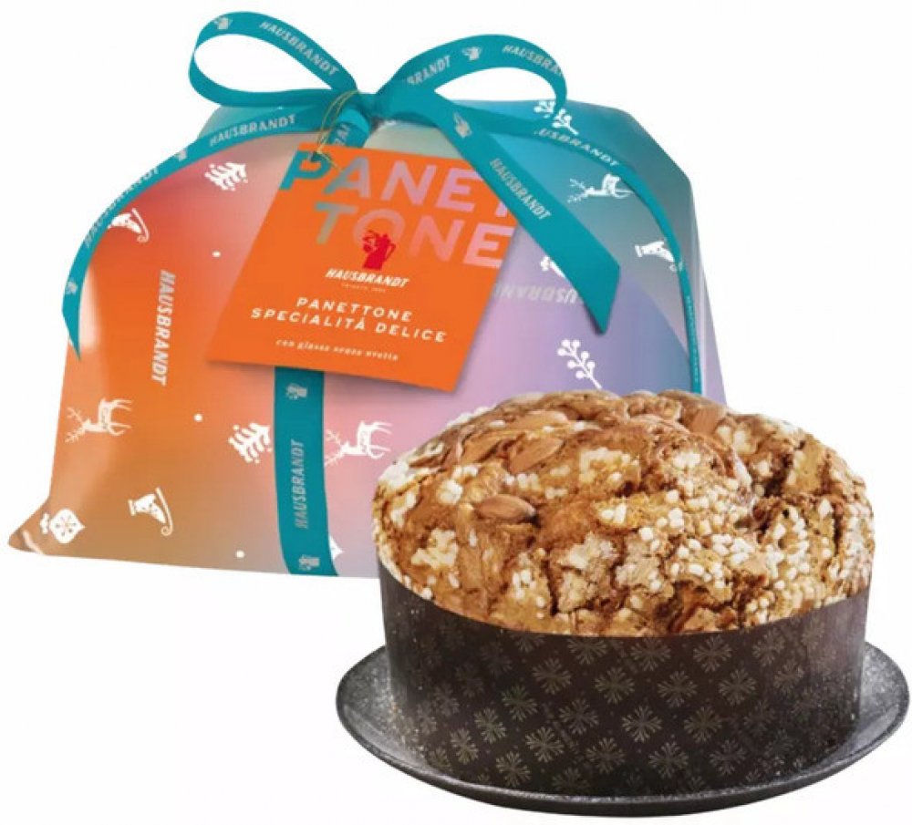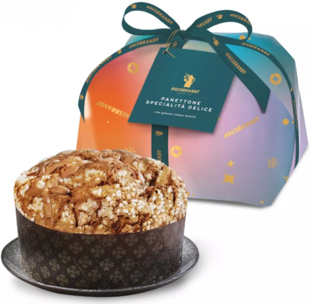 Přírodně kynutý pekařský výrobek s polevou z lískových ořechů, zdobený cukrovými zrnky a mandlemi. Panettone Specialità Delice je určen pro ty, kteří milují esenciální a rafinovanou sladkost a chtějí se ponořit do jemnosti teplých vůní. Voňavé těsto je obohaceno o přirozené vůně, které uvolňuje pomerančová pasta připravená z kandované pomerančové kůry. Panettone Specialità Delice je aromatická a svěží, překvapující kontrastem křupavé oříškové polevy s mandlemi a cukrovými kousky. Sladký dárek zabalený v barevném obalu připomínajícím odstíny oblohy na Štědrý den a saténová stuha se stříbrnými doteky, které evokují kouzlo Vánoc.