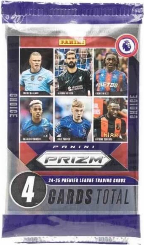 2024-2025 Panini Prizm Premier League Soccer Retail balíček obsahuje 4 karty Premier League.