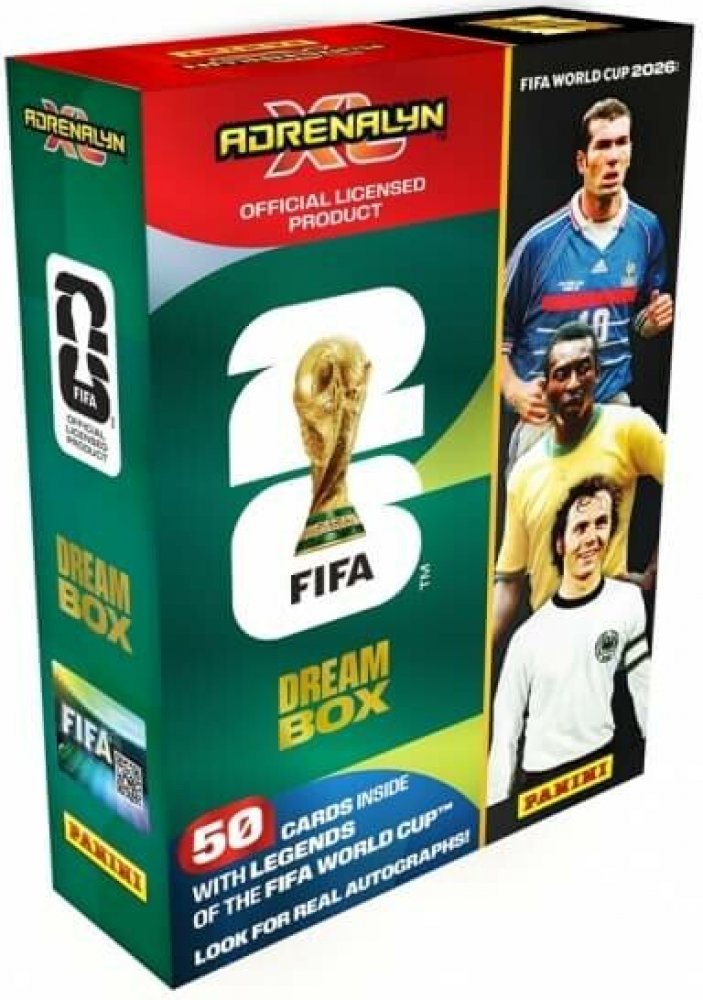 Obsah: - 25 karet - 24 exkluzivních karet legend FIFA World Cup - 1 Dream Box Momentum (exkluzivní autogram v každém 100. balení) *Mezinárodní verze: Obal je potištěn v angličtině nebo ve více jazycích. Zkuste prémiovou kolekci věnovanou největším fotbalovým hvězdám s FIFA World Cup Adrenalyn XL Dream Box Legends, exkluzivním produktem vytvořeným pro fanoušky Mistrovství světa a sběratele karet. Toto speciální vydání se zaměřuje na fotbalové legendy a nabízí sběratelské karty s prémiovým designem a vysokou hodnotou.Krabička obsahuje 25 sběratelských karet, z nichž 24 jsou exkluzivní karty FIFA World Cup Legends, věnované ikonickým hráčům, kteří zapsali historii světového mistrovství. Design karet je moderní, s podrobnými ilustracemi a grafickými prvky inspirovanými legendárními výkony.Ústředním prvkem tohoto produktu je Dream Box Momentum, extrémně vzácná speciální karta. Přibližně každých 100 krabiček obsahuje exkluzivní podpis, což činí každý Dream Box jedinečnou příležitostí pro sběratele získat cenný kousek.FIFA World Cup Adrenalyn XL Dream Box Legends je ideální pro sběratele, kteří chtějí prémiové produkty, pro fotbalové fanoušky a pro ty, kteří hledají vzácné karty nebo limitovaná vydání. Mezinárodní verze obsahuje balení v angličtině nebo v několika jazycích.Produkt je oficiálně licencován a představuje výbornou volbu pro sbírku nebo dárek. Prémiové balení ve formě krabičky je ideální pro uchování a vystavení.Základní vlastnosti• Prémiová krabička FIFA World Cup Adrenalyn XL Dream Box • Obsahuje 25 sběratelských karet • Obsahuje 24 exkluzivních karet FIFA World Cup Legends • Šance na kartu s autogramem Dream Box Momentum (1 z 100 krabiček) • Oficiálně licencovaný produkt FIFA Získáte 1 balení Dream Box ze série Panini FIFA World Cup Adrenalyn XL 2026. 1 balení Dream Box obsahuje: 25 karet + 24 exkluzivních karet World Cup Legends + 1 balení Dream Box MomentumZažijte kouzlo největší fotbalové scény světa s kolekcí sběratelských karet Panini World Cup Adrenalyn XL 2026! K mistrovství světa ve fotbale 2026 přináší Panini na trh zcela novou generaci oblíbených karet Adrenalyn XL – dynamičtější, kvalitnější a napínavější než kdykoli předtím. Série spojuje nejlepší národní týmy, top hvězdy, nadějné talenty a legendární hráče z celého světa. Každá karta zaujme moderním designem, brilantními barvami a podrobnými statistikami o útoku, obraně, technice a celkové síle. Díky různým typům karet, jako jsou základní karty, power karty, speciální a limitované edice, se každá sbírka stane skutečným vrcholem. Adrenalyn XL není jen zábava pro sběratele, ale také akce: karty jsou perfektně přizpůsobeny oficiálnímu hernímu systému Adrenalyn XL a umožňují napínavé souboje s přáteli. Ať už jde o výměnu, hraní nebo sbírání – tato série nadchne děti, mládež i dospělé fotbalové fanoušky. Sběratelské karty Panini World Cup Adrenalyn XL 2026 jsou ideální jako dárek, pro zahájení nové sbírky nebo pro rozšíření stávajících kolekcí. Absolutní must-have pro všechny, kteří chtějí prožít mistrovství světa 2026 na vlastní kůži – karta po kartě, okamžik po okamžiku. Ponořte se do světa mezinárodního fotbalu a zajistěte si kousek historie mistrovství světa s Panini Adrenalyn XL 2026!