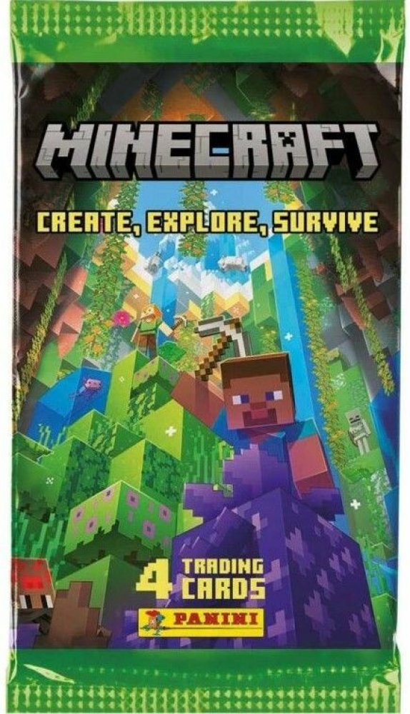 Sběratelské karty MINECRAFT. Každý balíček obsahuje 4 karty. Panini přichází se třetí sérii s podtitulem create, explore a survive nové sběratelské karty tématem Minecraft.