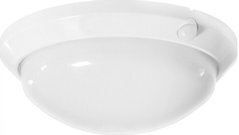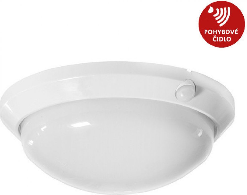 Stropní a nástěnné svítidlo VENKOVNÍ, pro žárovky 1xE27/max60W/230V s integrovaným PIR (INFRA ČERVENÝM) pohybovým čidlem. Průměr 30 cm, výška 10 cm.