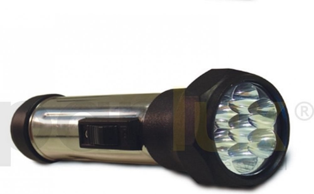 Úplně obyčejná baterka - ruční svítilna se 7 LED diodami vhodná třeba pro děti na tábor. Minimální spotřeba energie LED technologie. Typ baterií: 2xD (nejsou součástí balení). V sortimentu společnosti PANLUX najdete zejména svítidla bytová, kancelářská, průmyslová, zahradní, montážní, světelné zdroje (halogeny, MHD, zářivky, úsporné žárovky, LED zdroje) a další doplňky jako jsou například trafa, drivery, senzory, čidla, kapesní a čelové svítilny a bezdrátové zvonky.