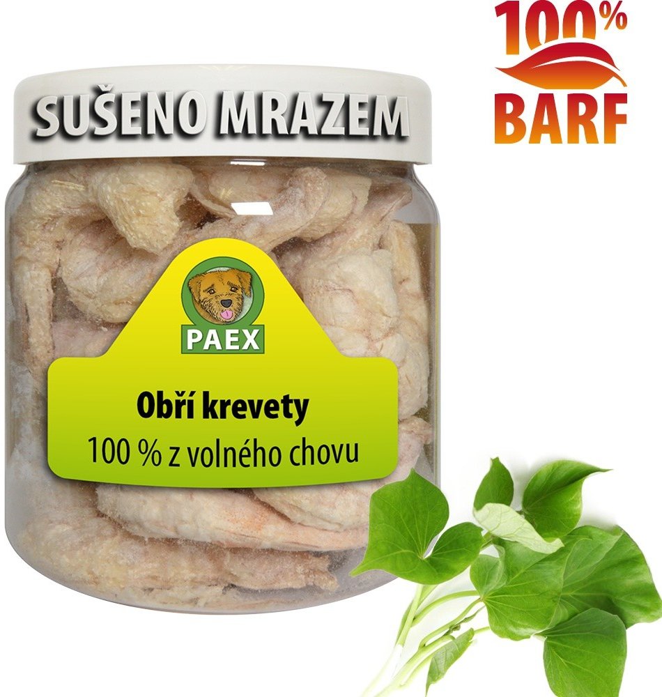 Sušení mrazem zachovává nutriční hodnoty i chuť. Obří krevety jsou 100% kvalitní, pochází převážně z volného moře. Sušení probíhá tak, že se hluboce zmražené maso vloží do vakuové komory a během 24 hodin se z něj odpaří zmrzlá tekutina. Během sušení ztratí přibližně 2/3 hmotnosti, ale veškeré minerál...